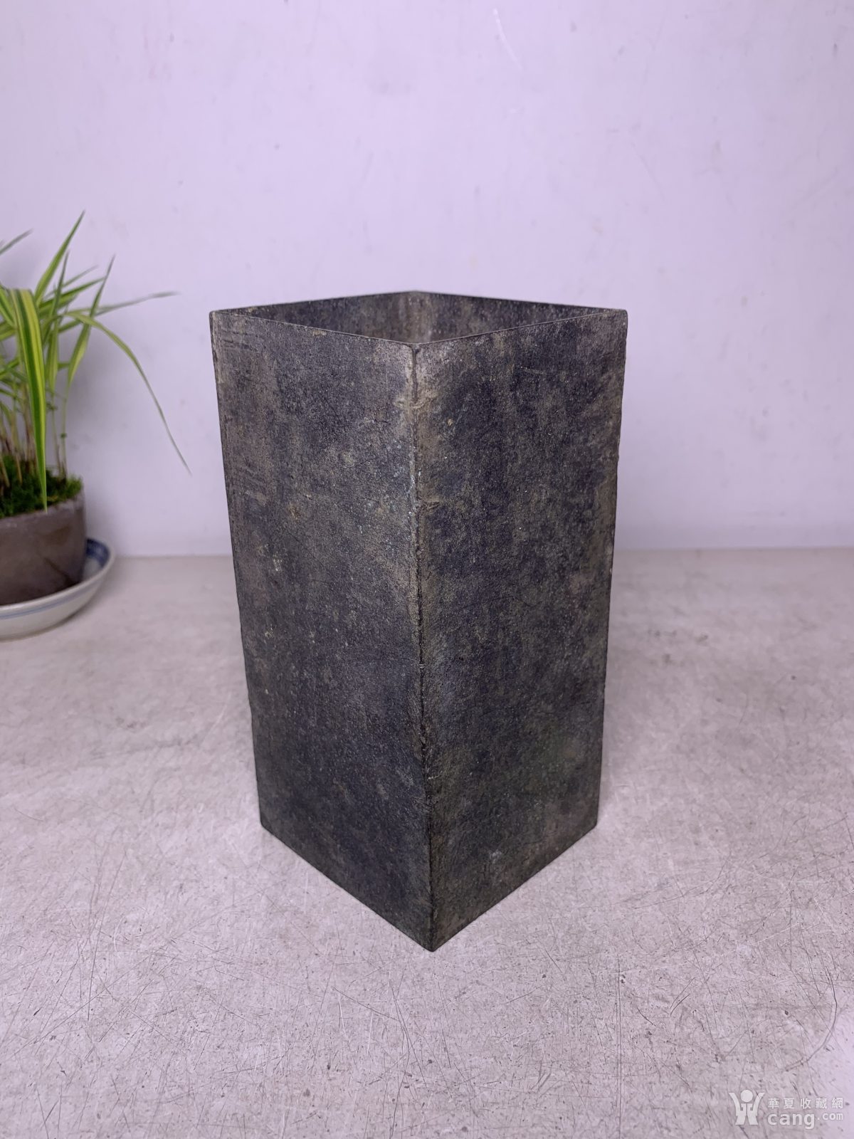清末民国黄铜四方大笔筒