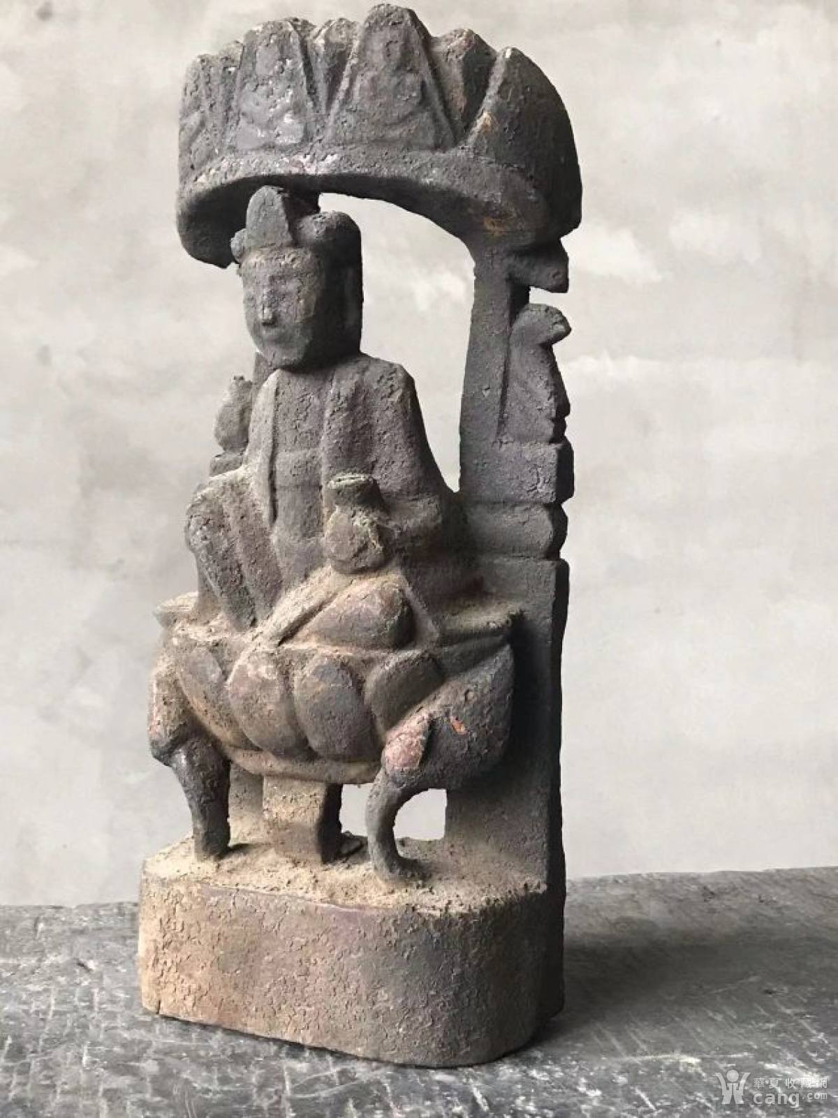 明代古佛,面容慈祥,端坐于莲花宝座,原大漆描金斑驳可见,楠木