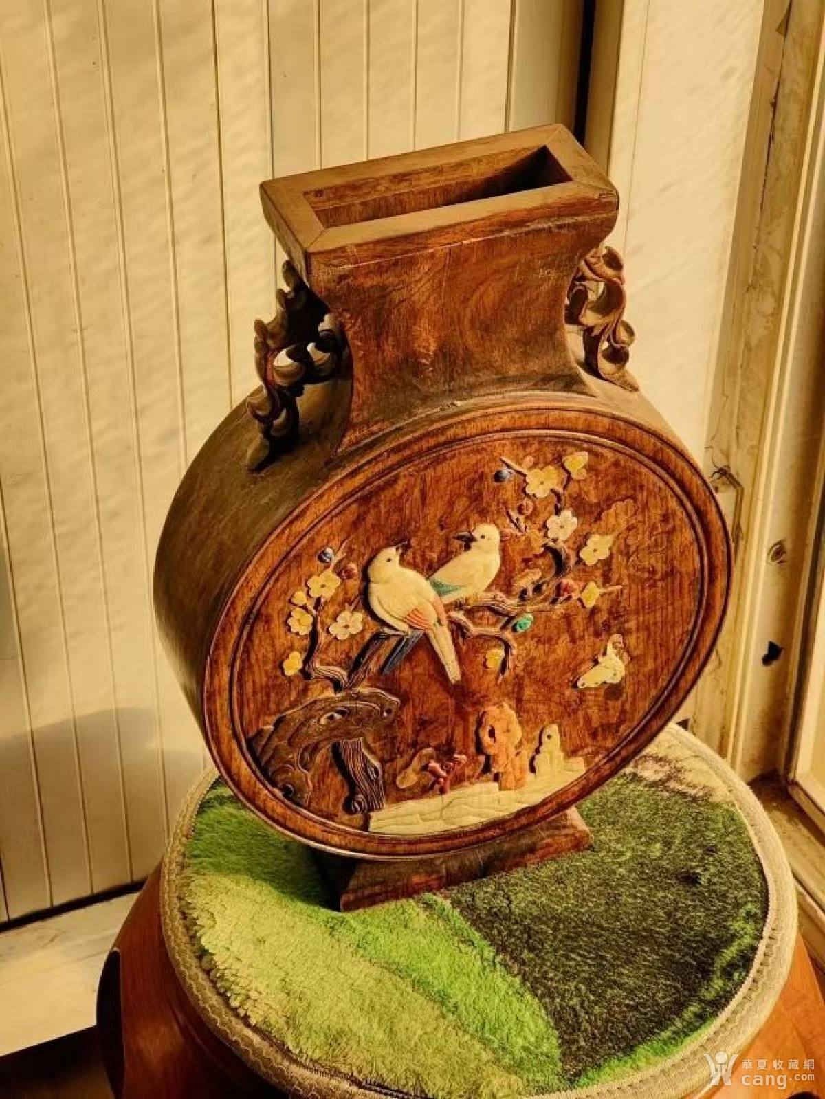 329号,清代皇宫老海南黄花梨【龙耳镶嵌百宝,赏瓶】