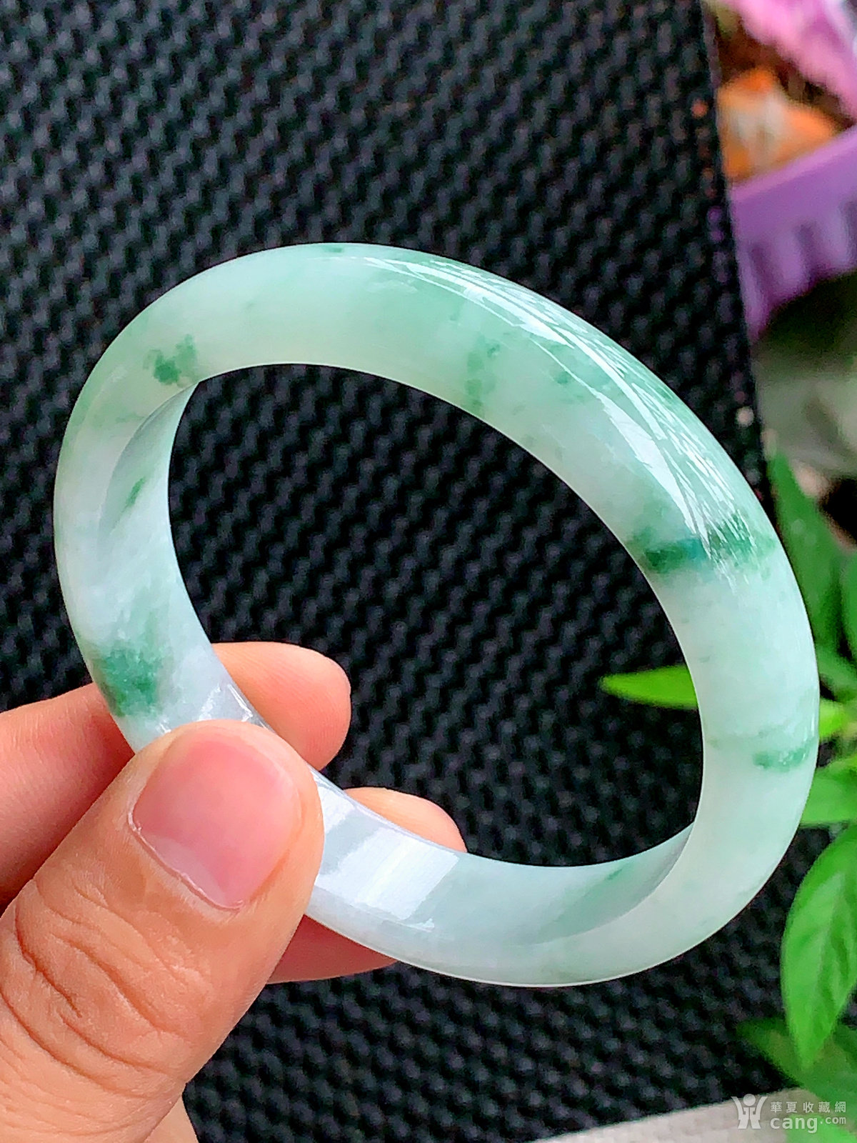 缅甸天然翡翠A货冰透水润飘花大圈口宽边手镯62.8圈口