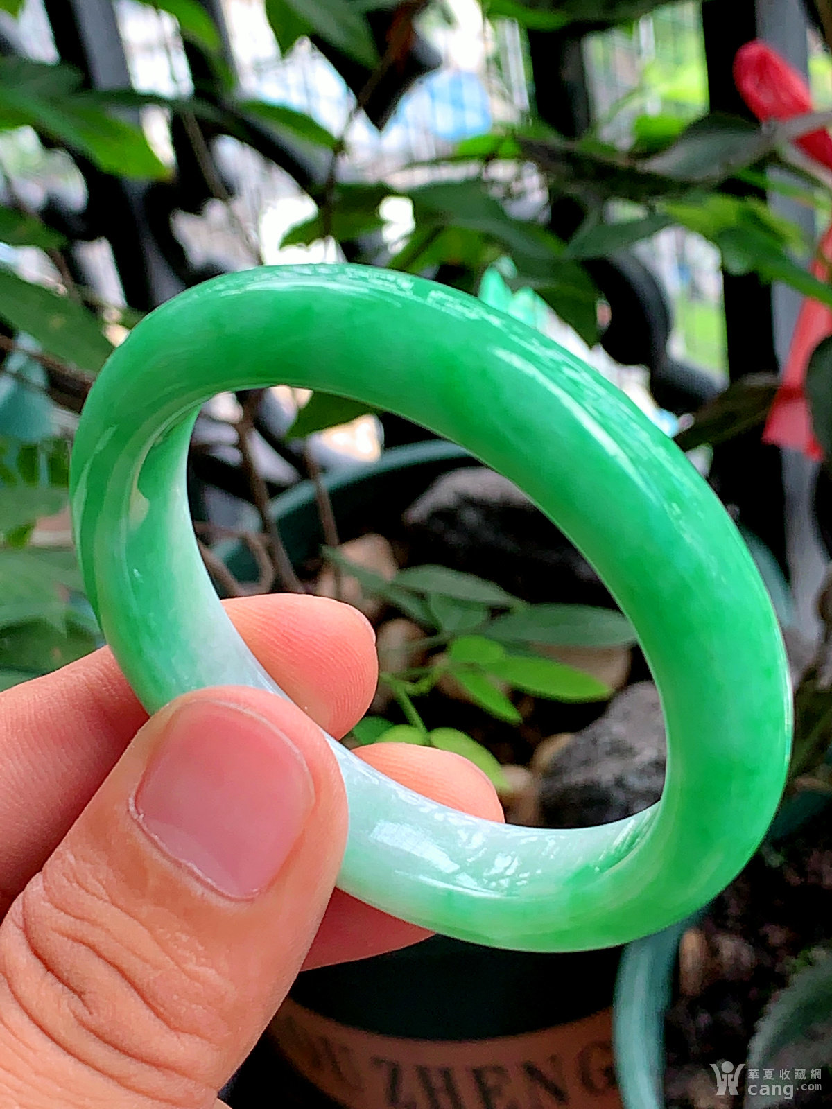 缅甸天然翡翠A货冰润飘花宽边手镯51.6圈口