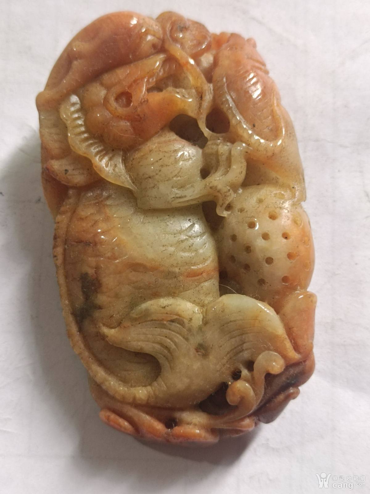 回流创汇的物件和田玉兽面满工珠子一对E155