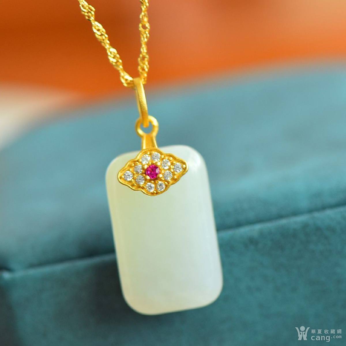 银镶和田玉无事牌配锆石吊坠