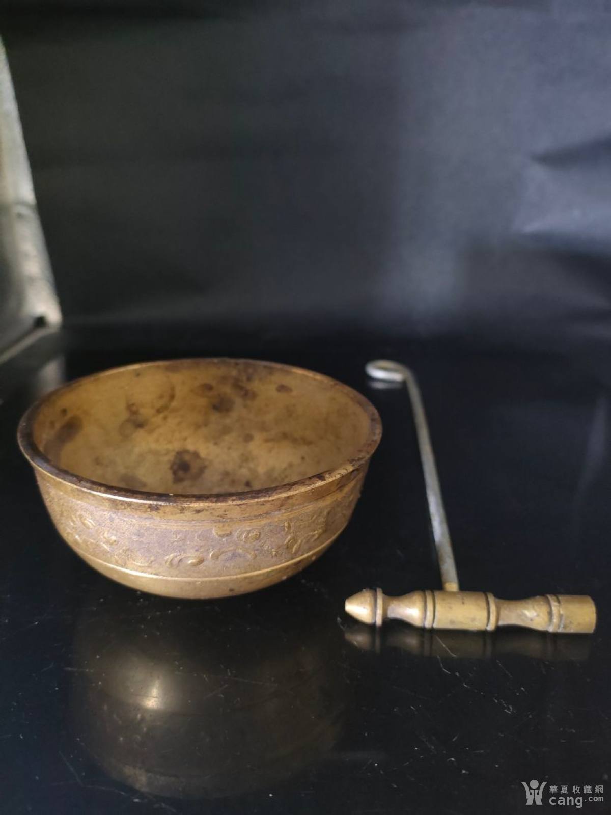 清代花卉纹铜磬铜锤,带纹饰的漂亮少见,铜质精良,包浆温润老道