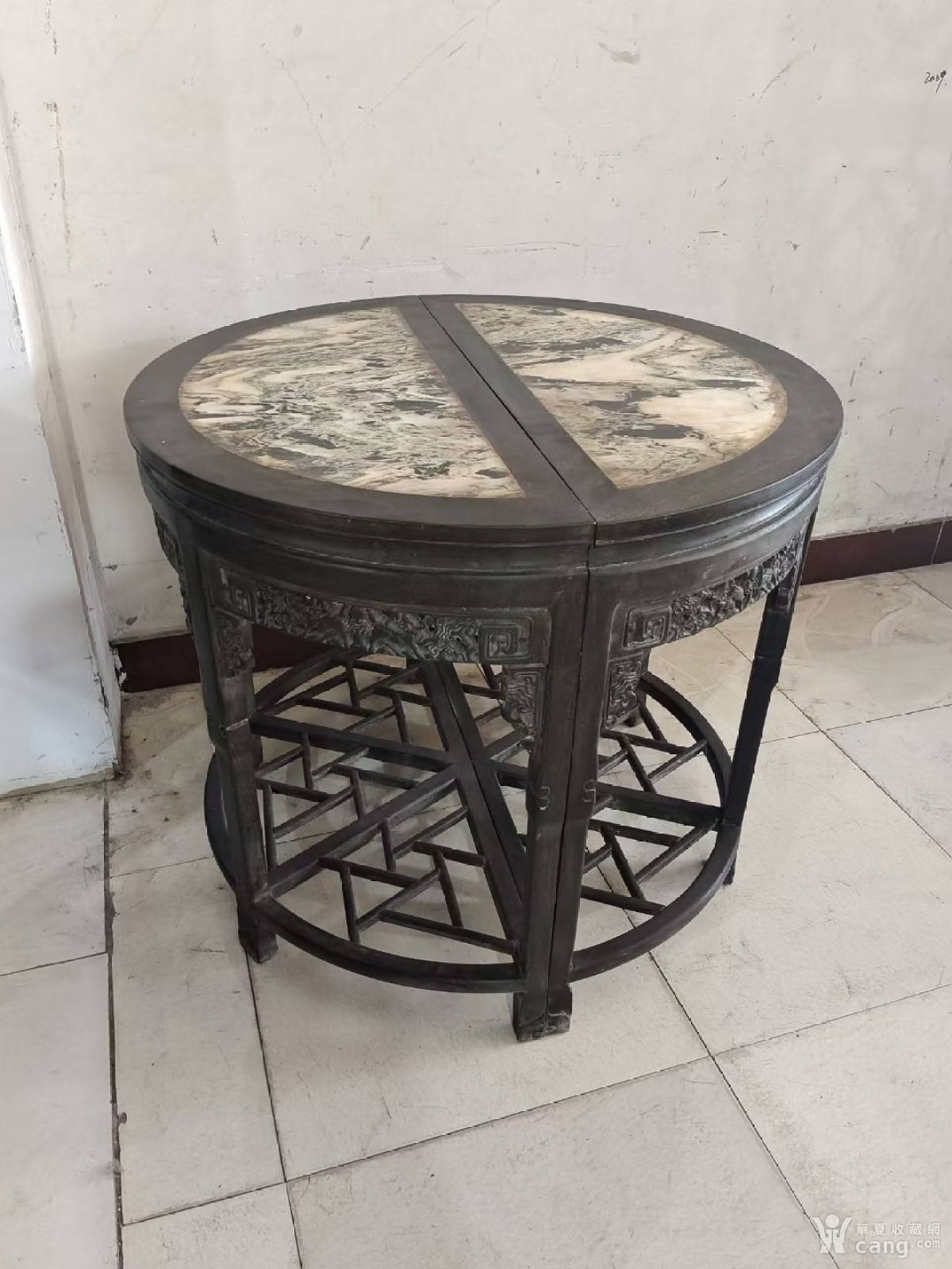 半月台,俗称半圆桌,此桌面由一块云石一分为二,文理清晰漂亮,