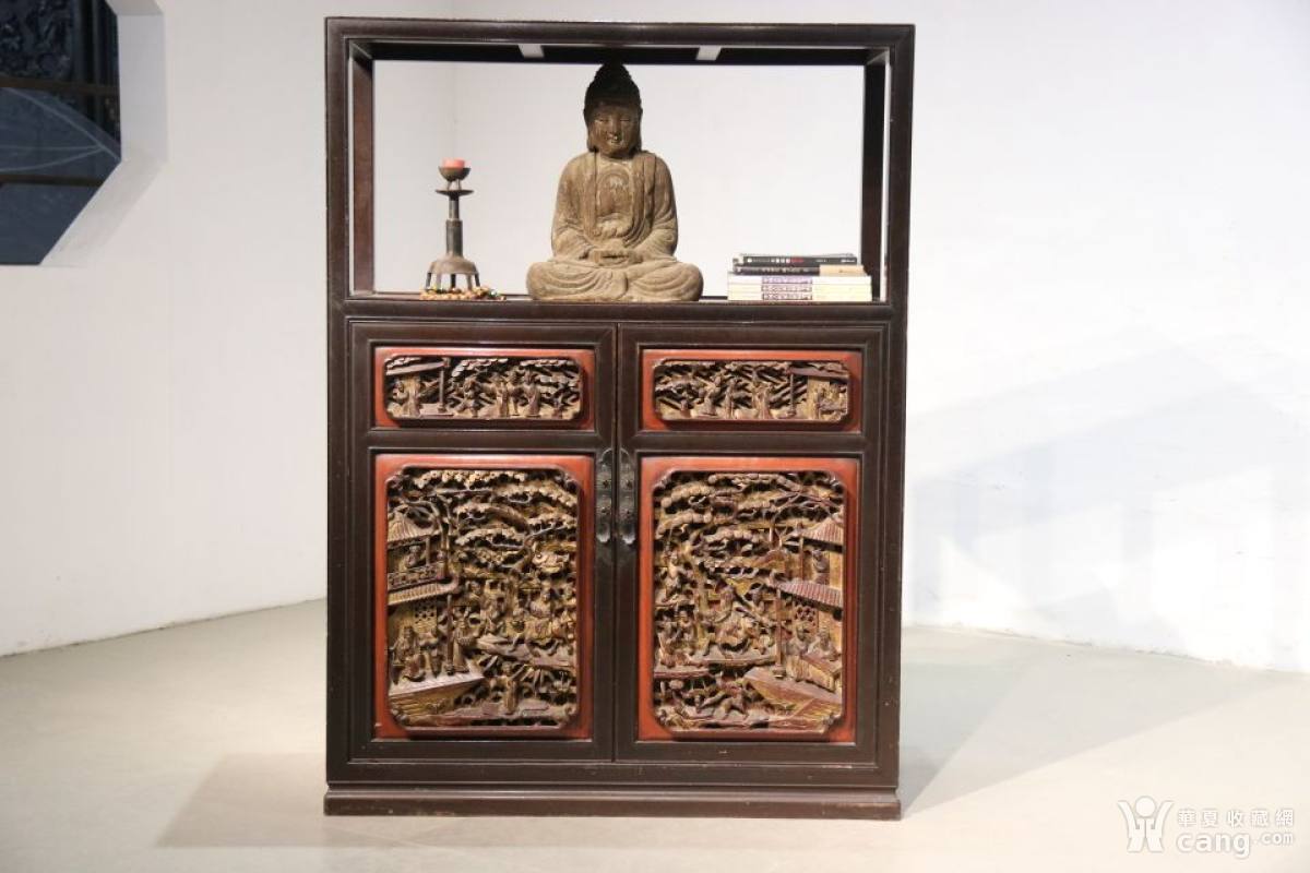 清代•文房/鎏金人物亮格书柜 此柜上部设亮格可陈设书籍古