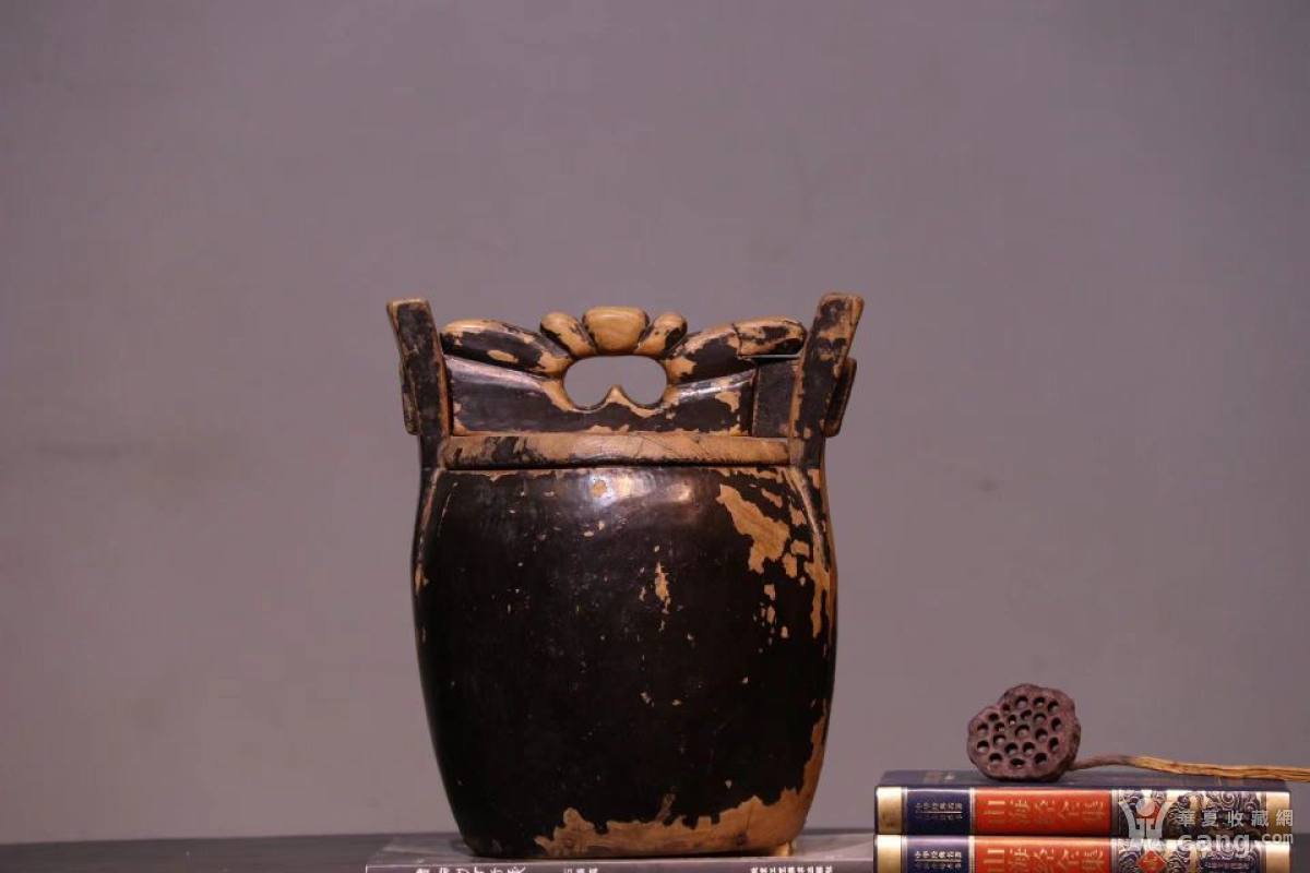 【壶套】 清代:楠木:犹豫年代久远,大漆有部分脱落, 器型圆