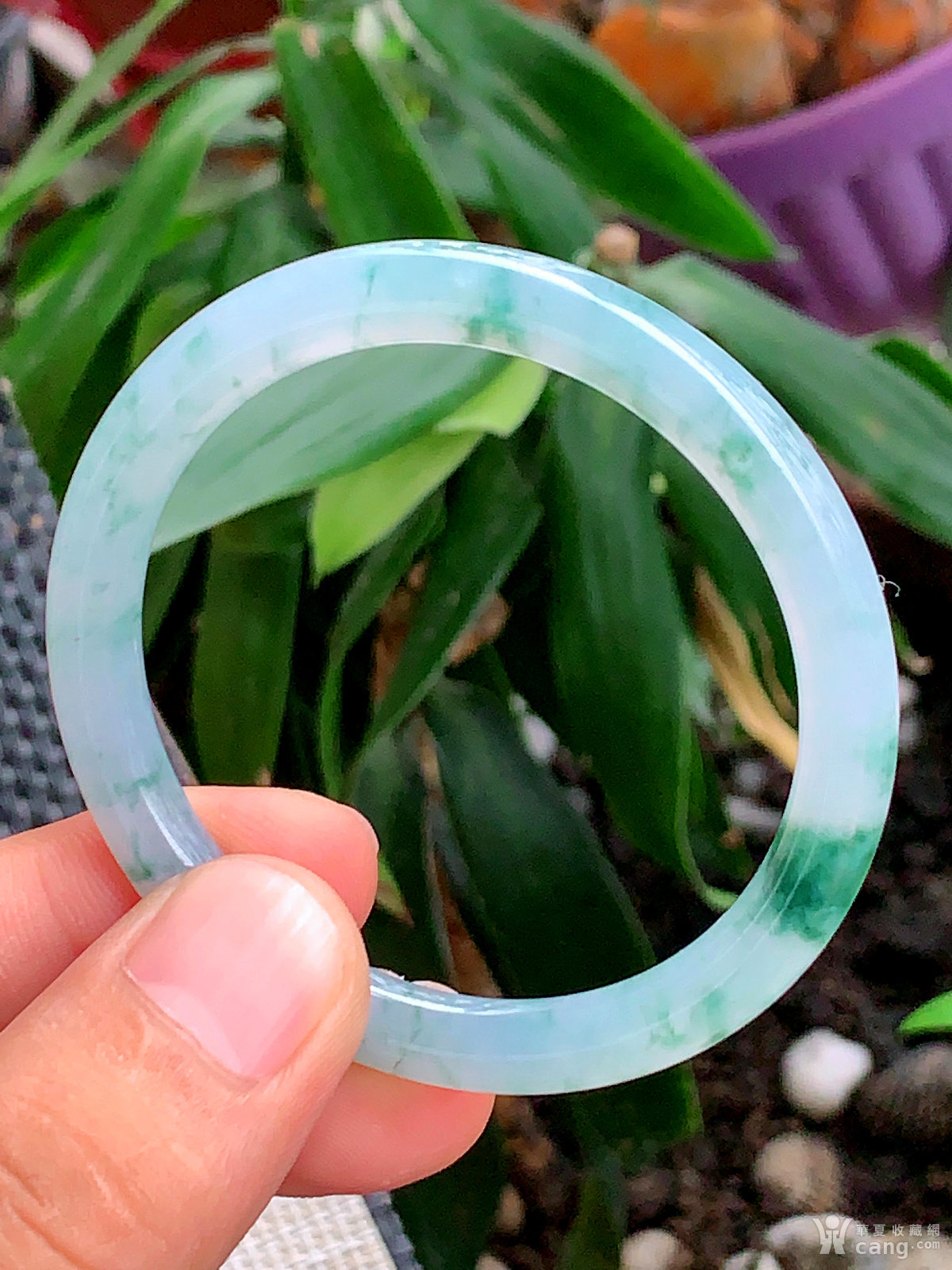 缅甸天然翡翠A货冰透水润飘花圆条手镯52.8圈口