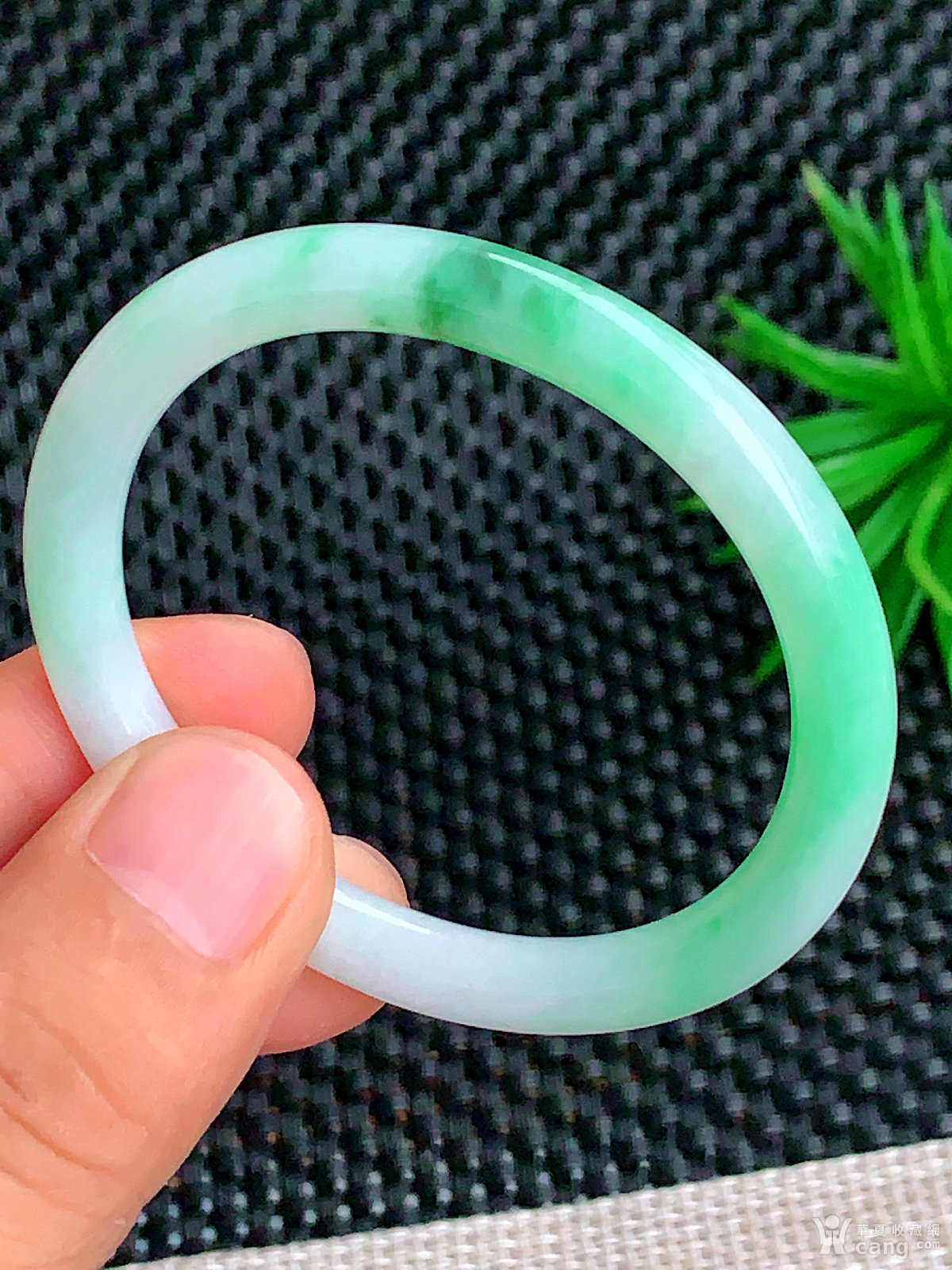 缅甸天然翡翠A货冰润飘花圆条贵妃手镯54圈口