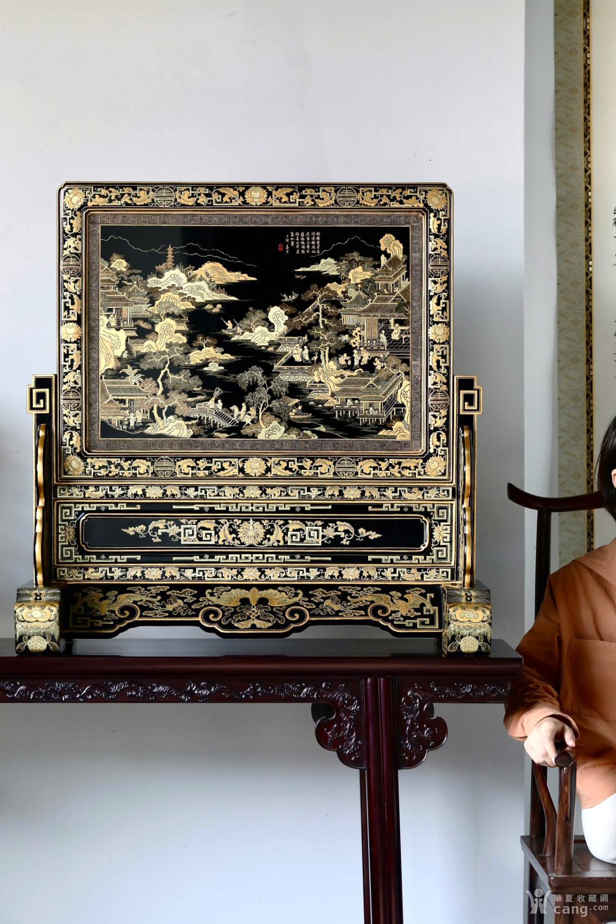 收藏级 木胎漆器描金山水人物故事图文房插屏