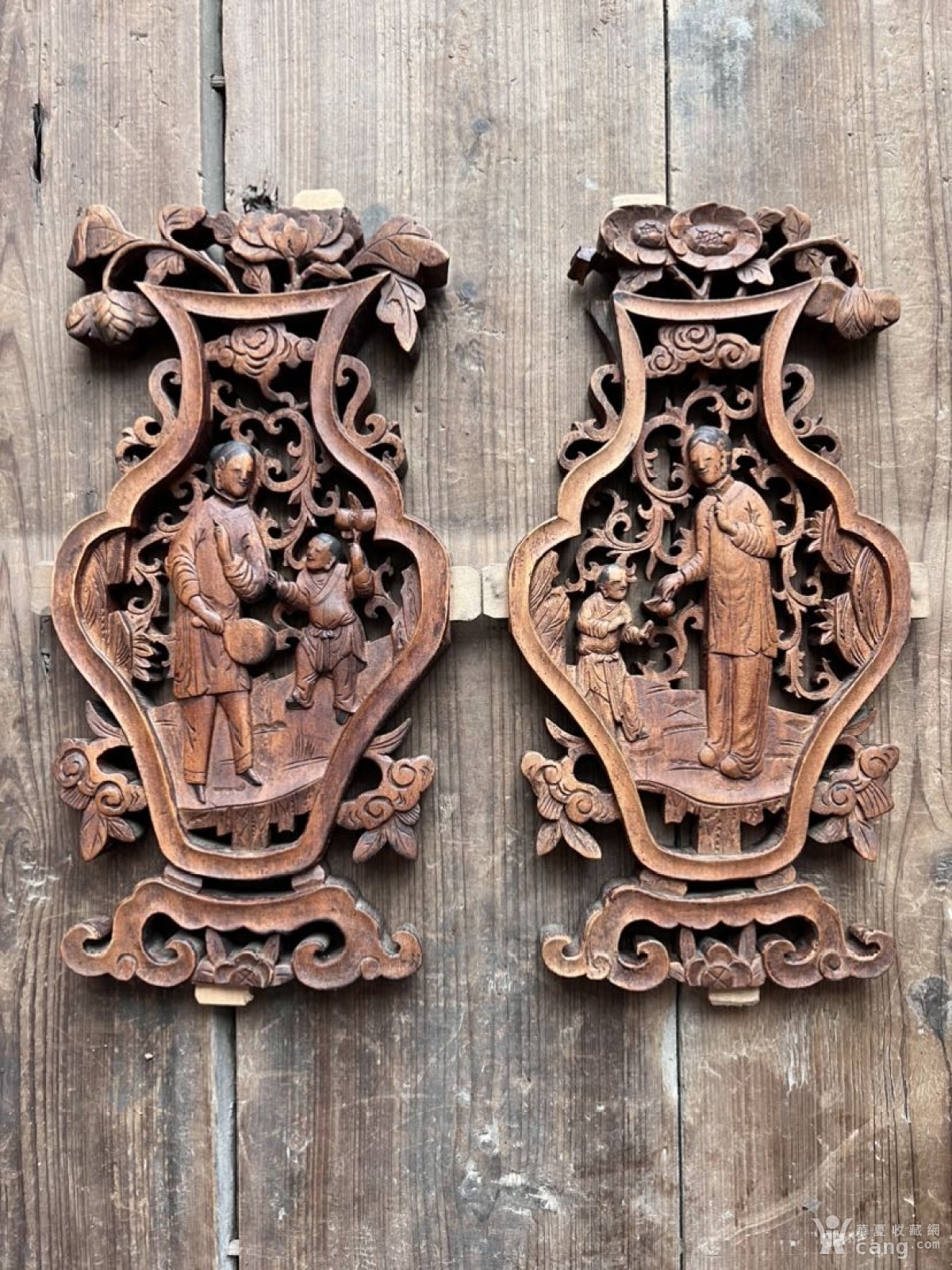 清代精品吉子节子结子一对老花板老木雕
