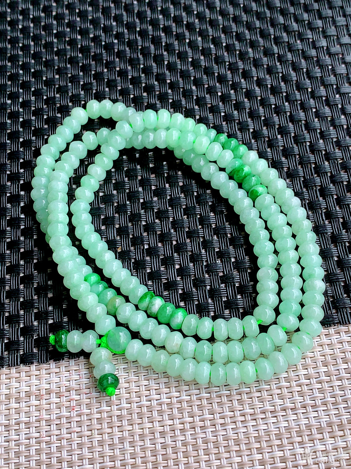 缅甸天然翡翠A货冰透水润满绿算盘珠项链