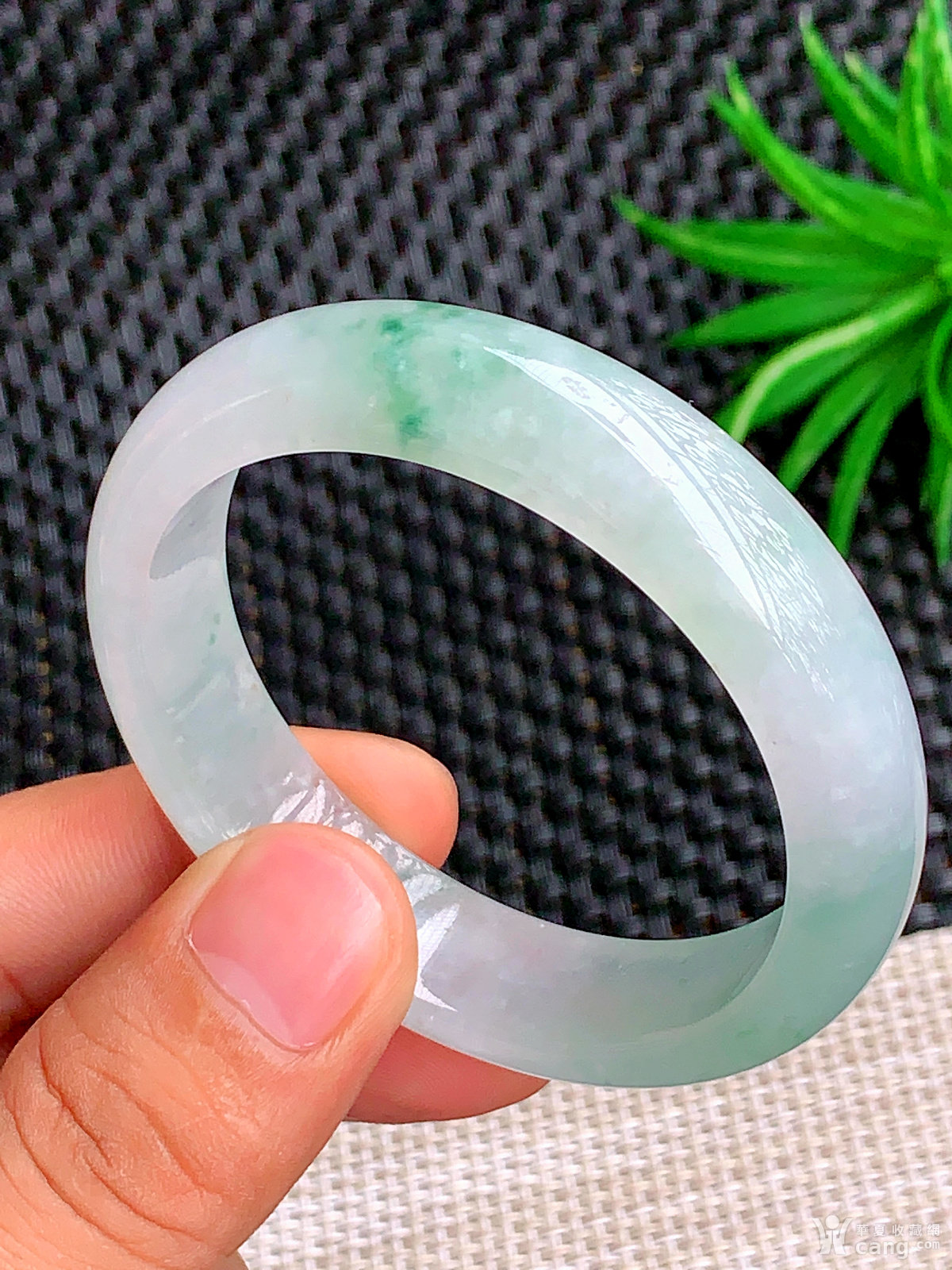缅甸天然翡翠A货冰透水润飘花宽边手镯55.8圈口
