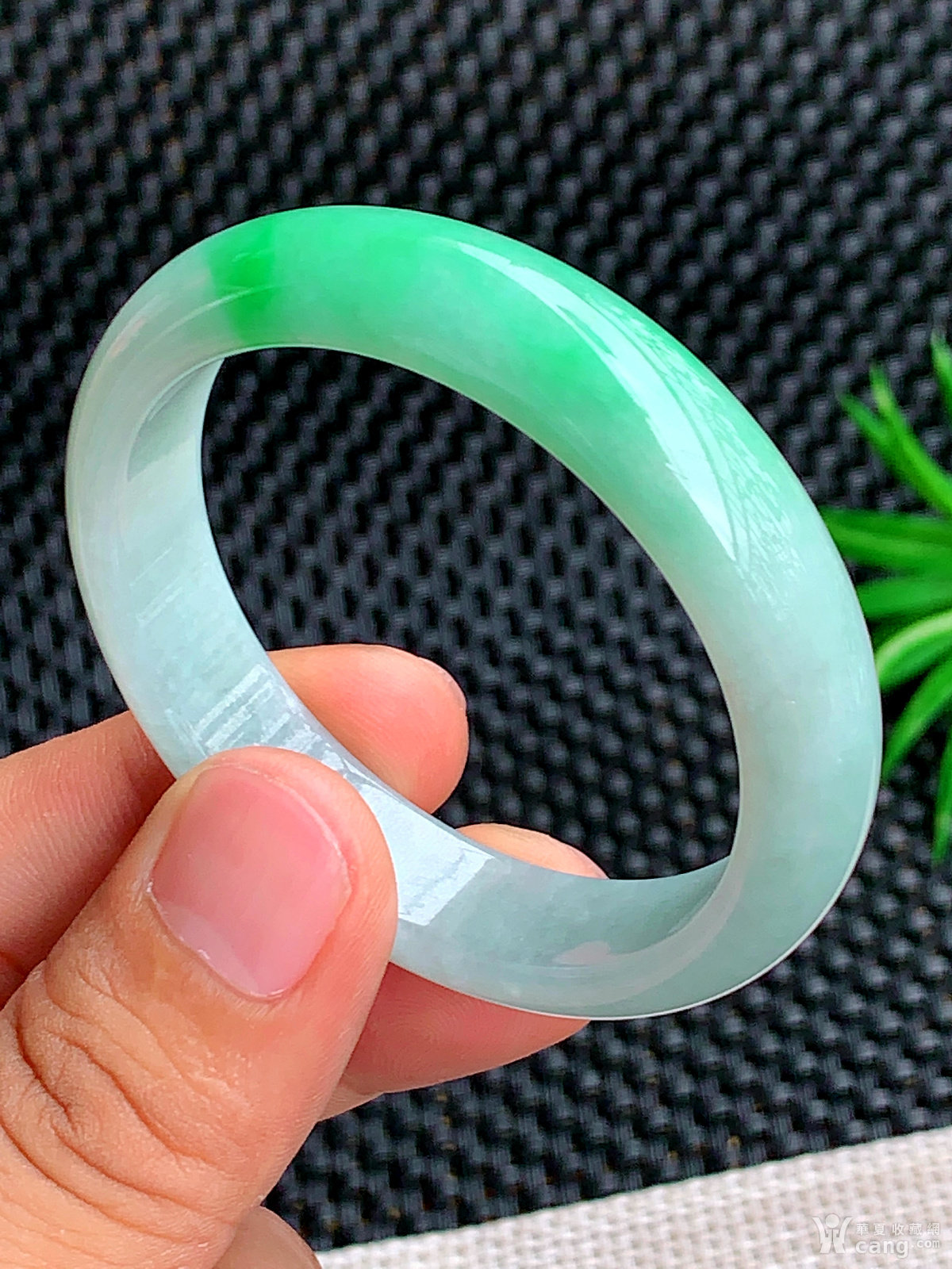 缅甸天然翡翠A货冰润飘花宽边手镯51.5圈口