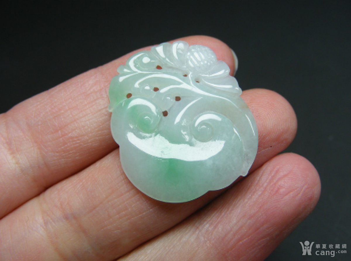 79几十年的A货冰种飘阳绿翡翠双面工带孔灵芝盛开花卉坠