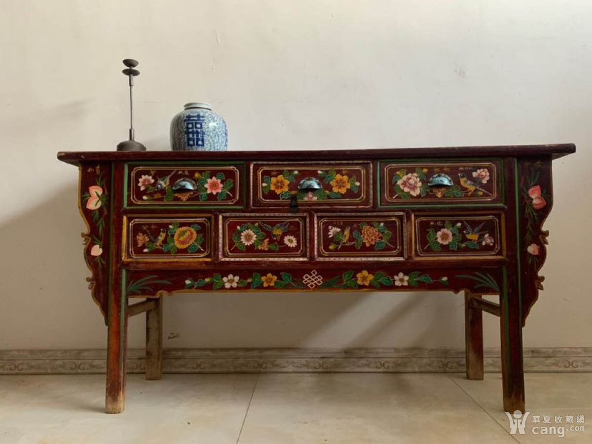 清代榆木大漆花鸟画案,书桌,画桌,独板桌面,手绘大漆,保存完