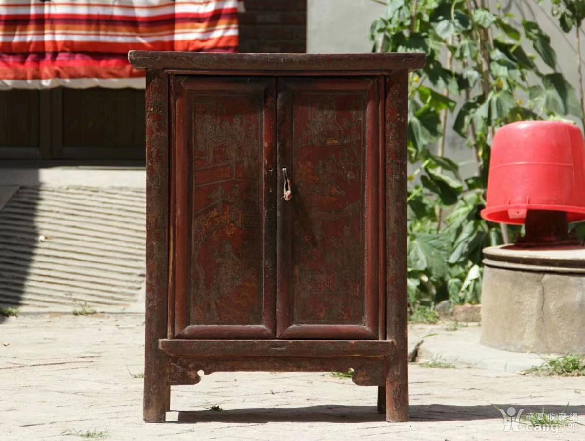 【小书柜】 清早期,楠木胎描彩绘,框描缠枝牡丹,门描画人物故