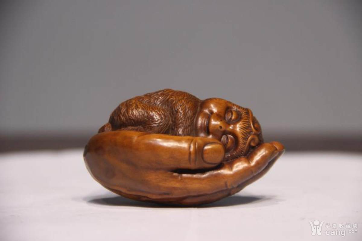 木雕手把件小叶黄杨木雕刻生肖动物猴子掌中猴车内摆件吊坠手把玩
