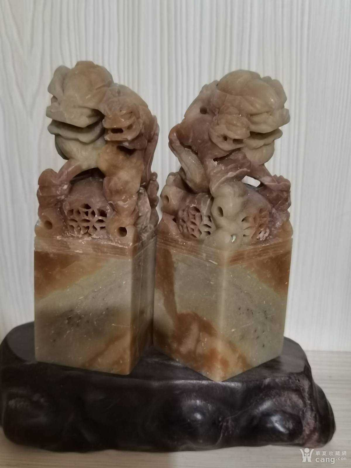 回流创汇的物件和田玉兽面满工珠子一对E155