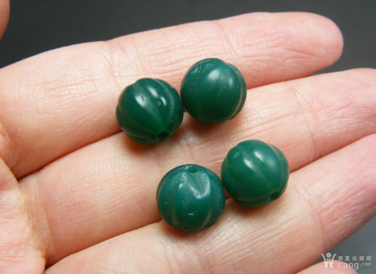 41几十年的天然绿玛瑙大瓜棱珠4颗
