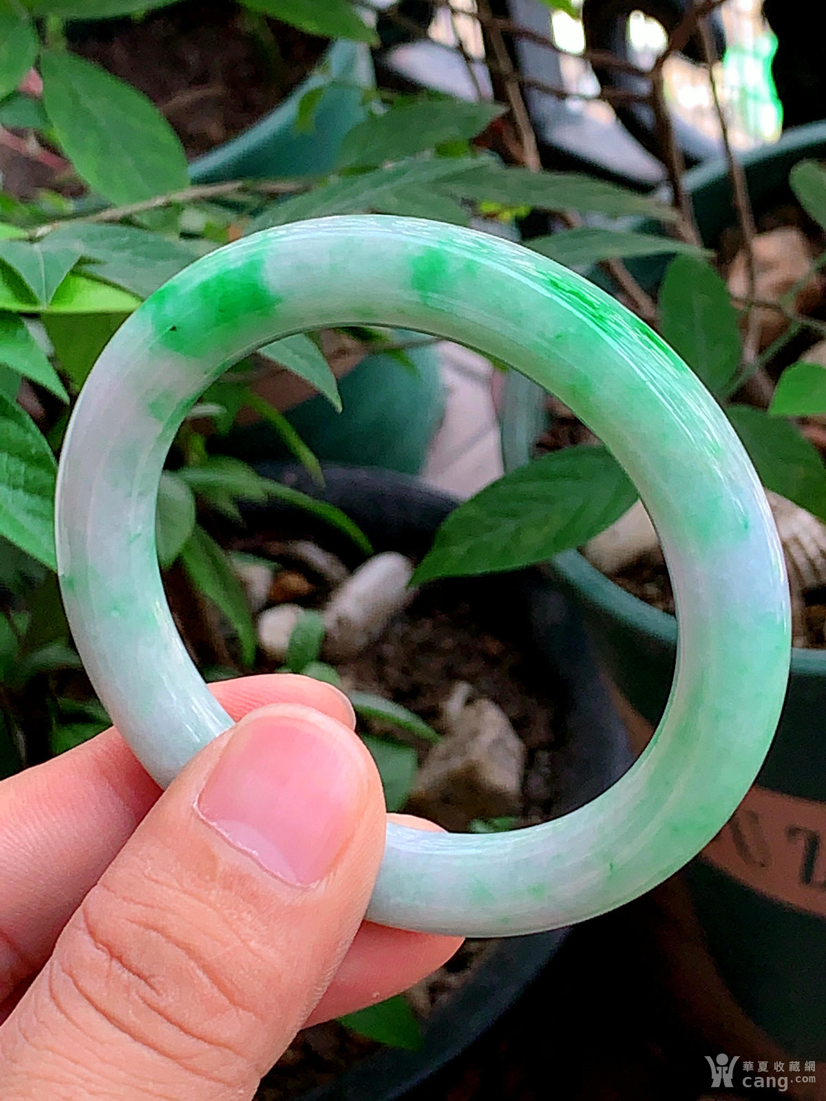缅甸天然翡翠A货冰润飘花圆条手镯55.3圈口