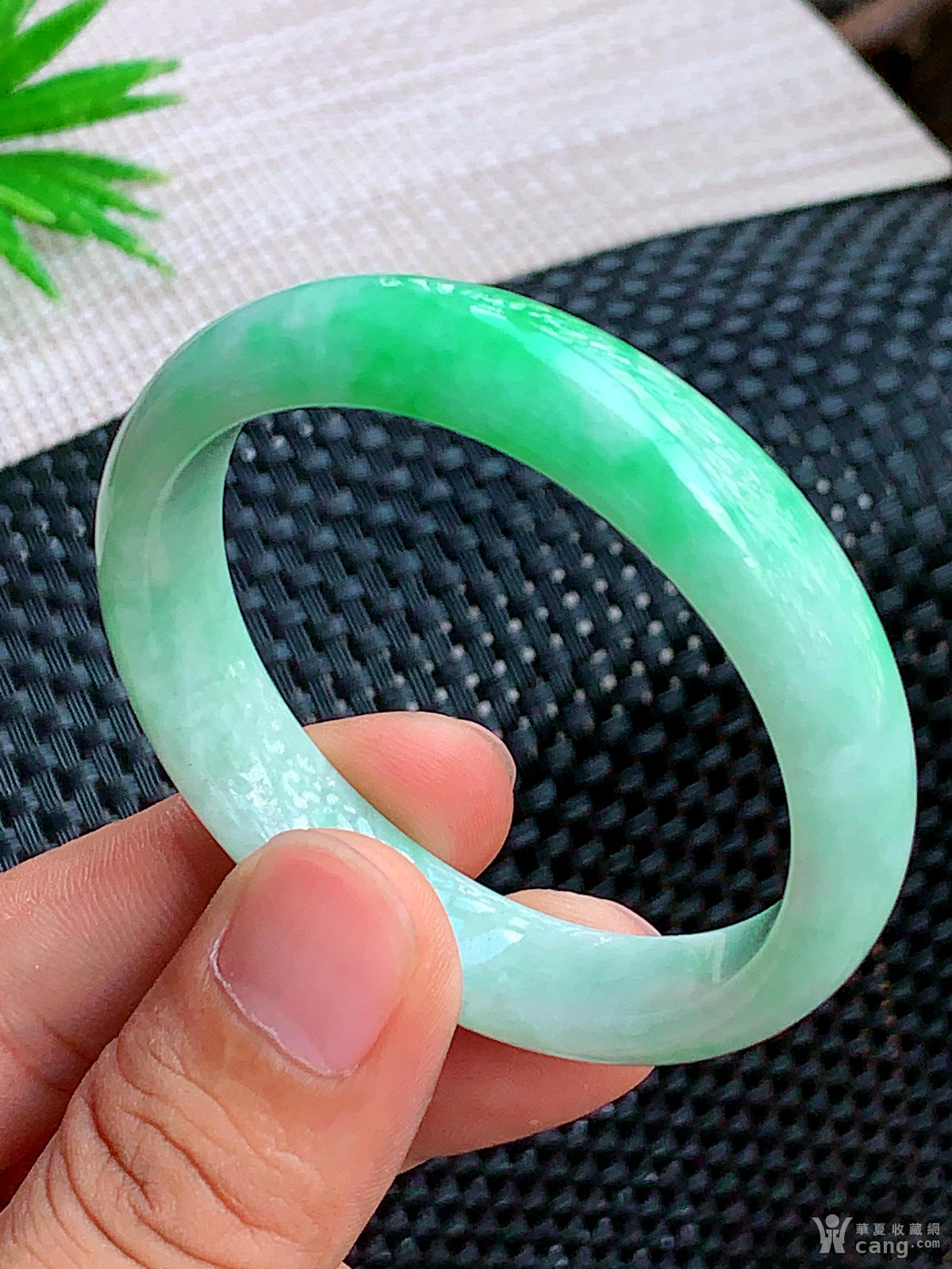 缅甸天然翡翠A货冰润飘花宽边手镯52.5圈口