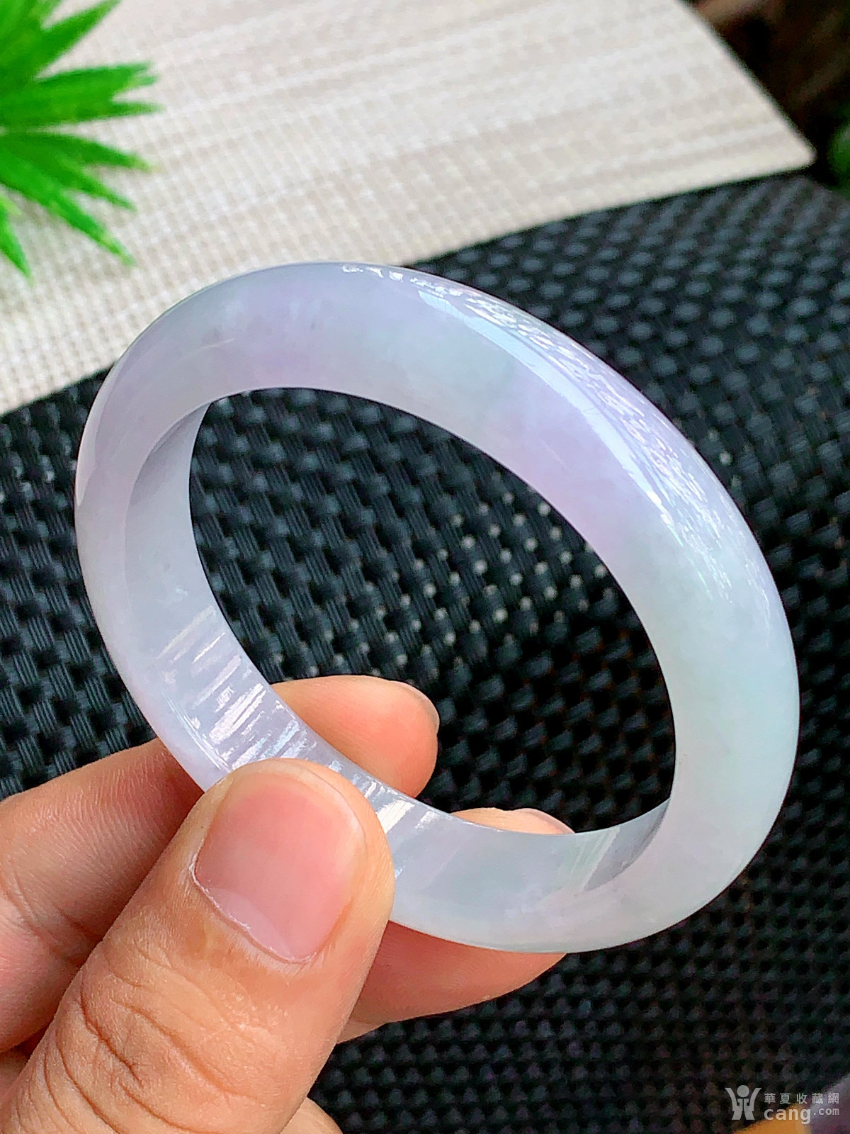 缅甸天然翡翠A货冰透水润紫罗兰宽边手镯54.8圈口