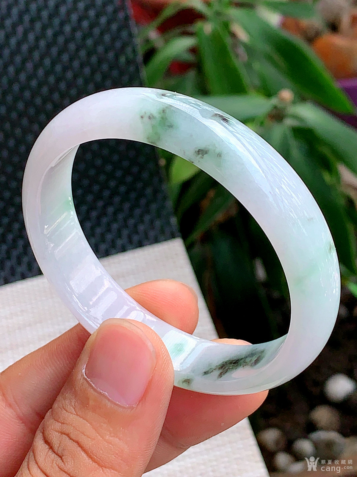 缅甸天然翡翠A货冰润飘花宽边手镯56.8圈口