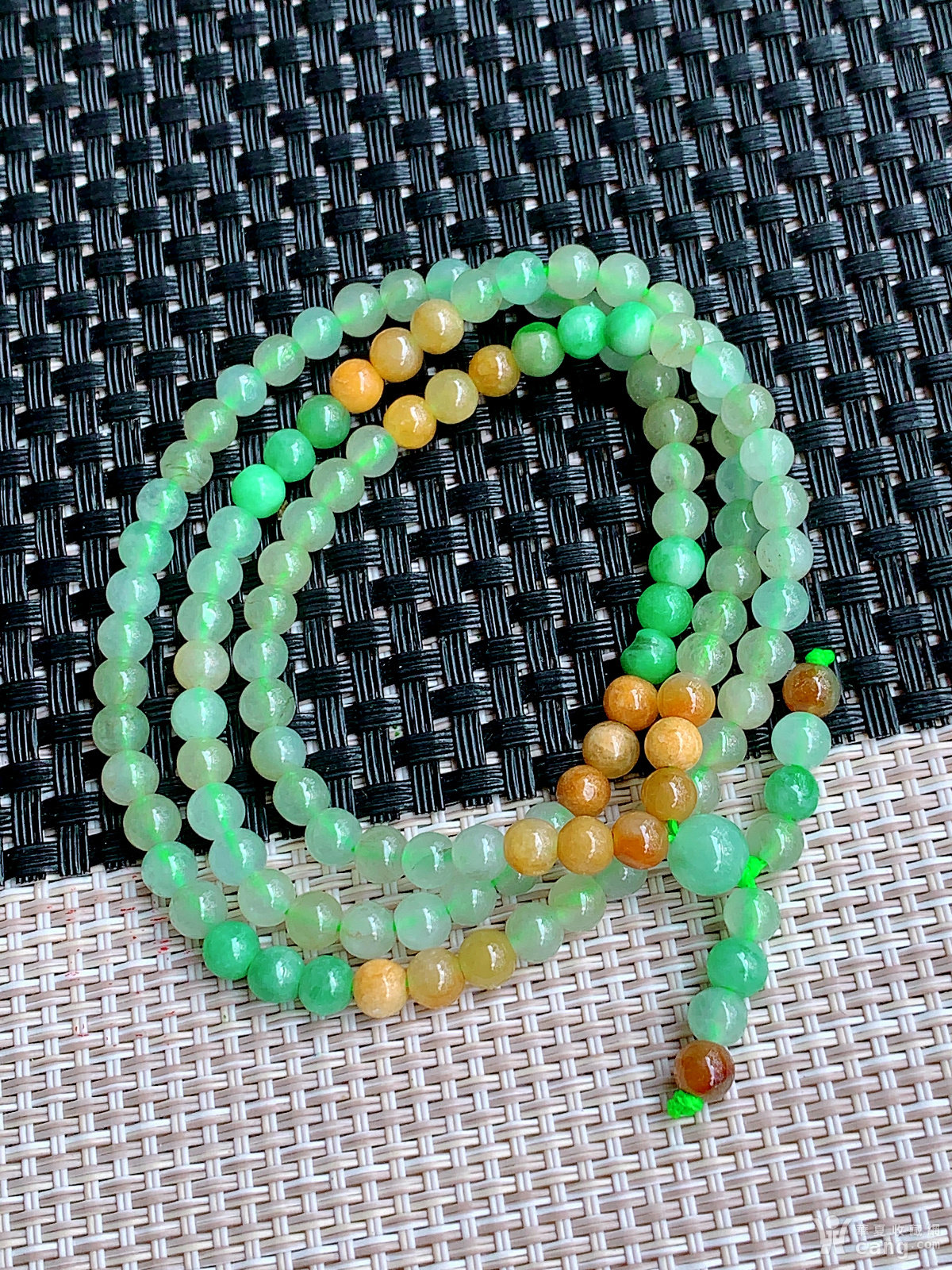 缅甸天然翡翠A货冰透水润双彩圆珠项链