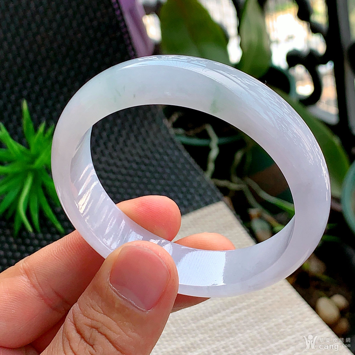缅甸天然翡翠A货冰透水润浅紫宽边手镯58.6圈口