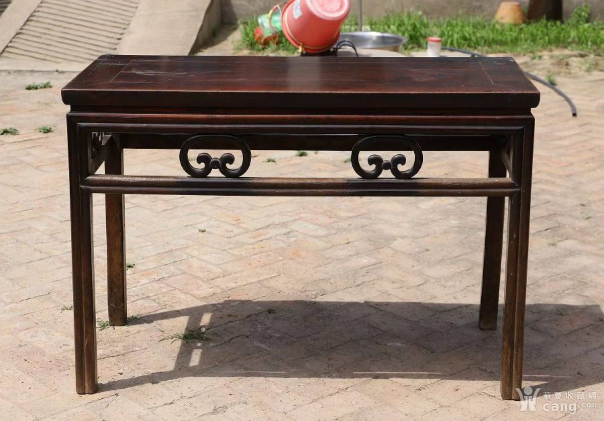 旧藏清早期楠木书桌,腿批料呈瓜瓣梳背式,四面卡如意云纹卡子花