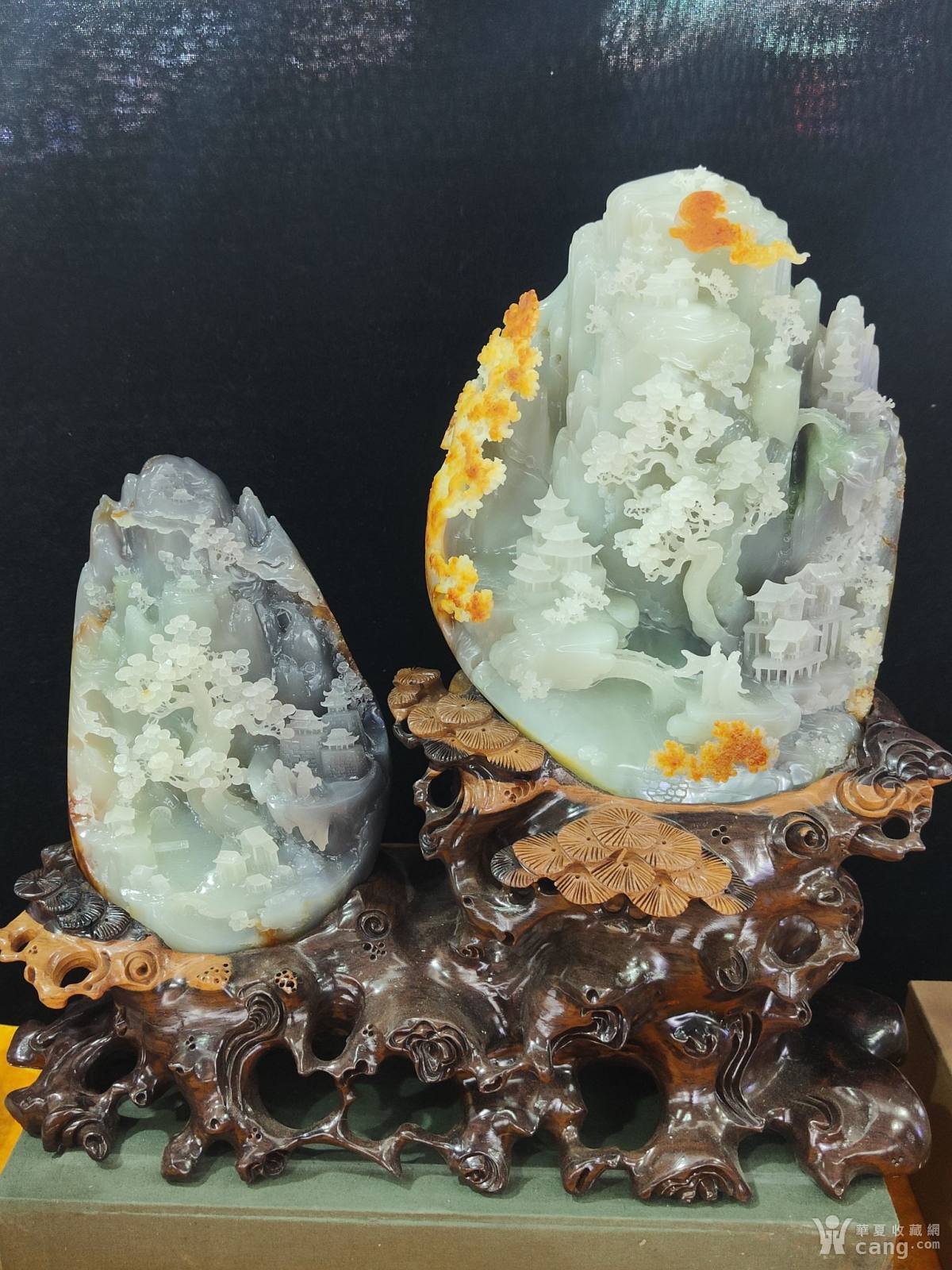 回流创汇的物件和田玉兽面满工珠子一对E155