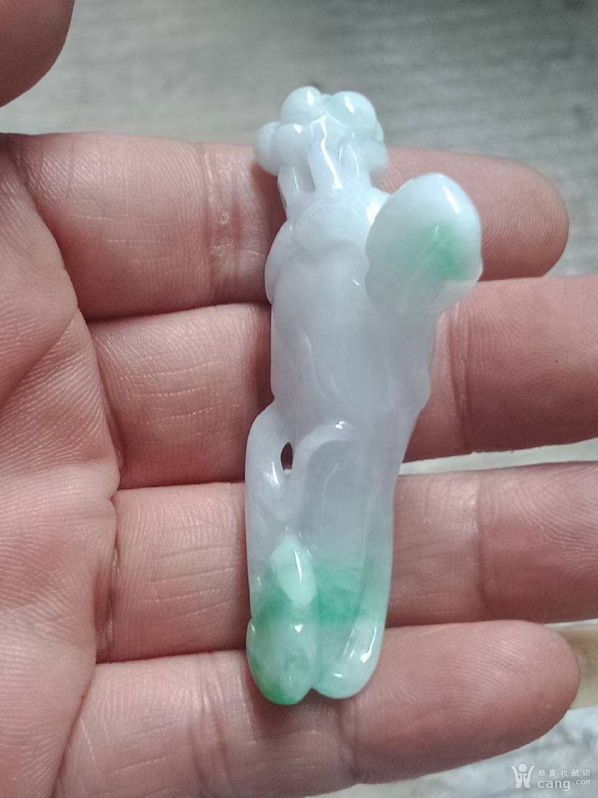 缅甸翡翠A2212-2A阳绿双彩千年老山参手把件(送证书)