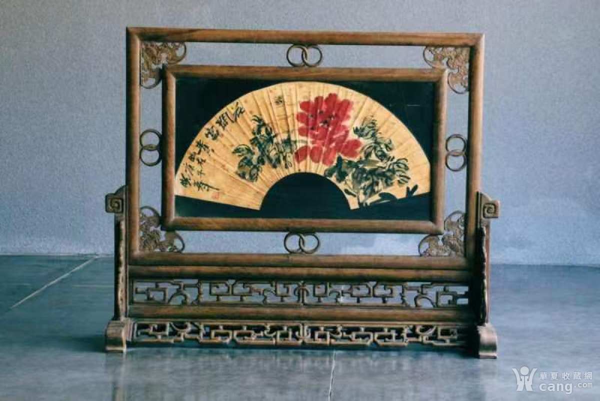 文人空间·案头楠木活插屏~边框全镂空透雕工艺。屏芯装嵌扇面,
