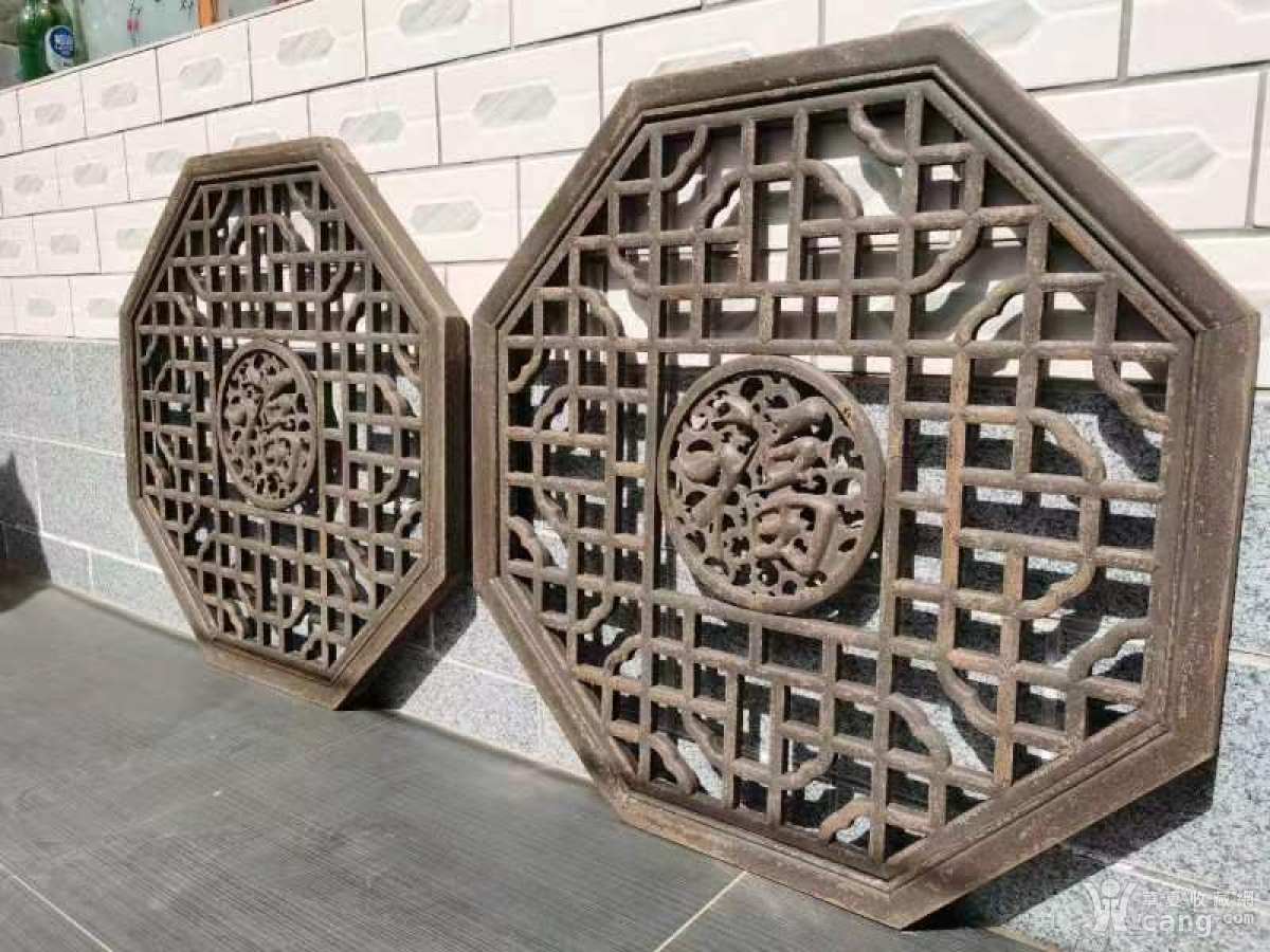 花窗一对木质榆木大漆开片 尺寸直径80/80厘米