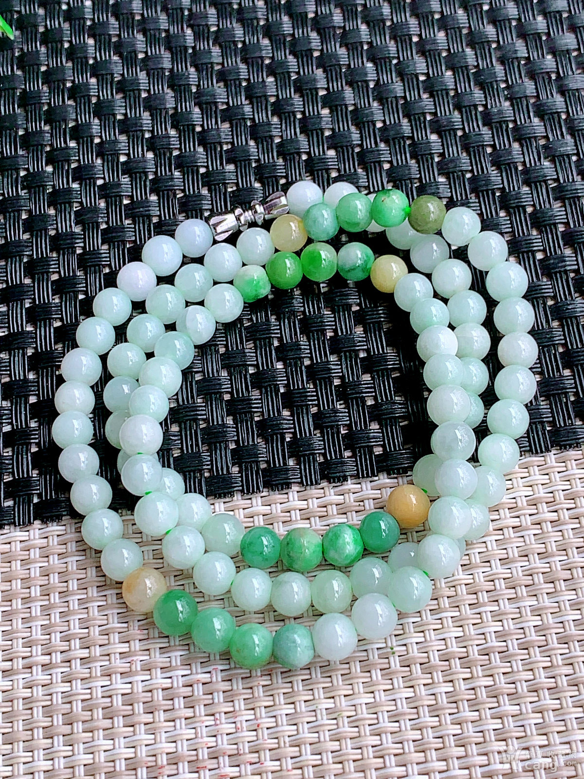 缅甸天然翡翠A货冰润双彩圆珠项链