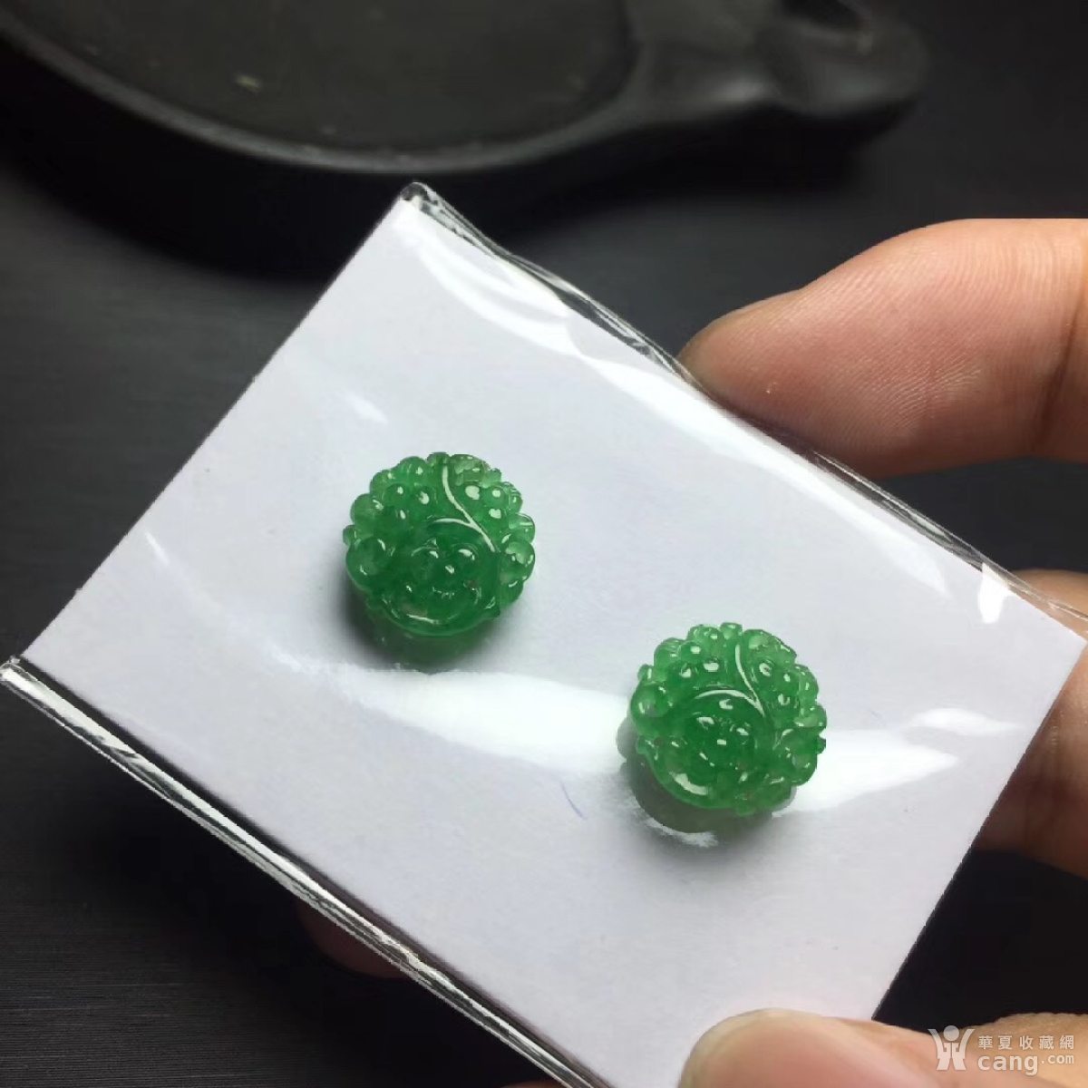 D213创汇期冰种飘绿翡翠缠枝花卉纹小圆形花片一对