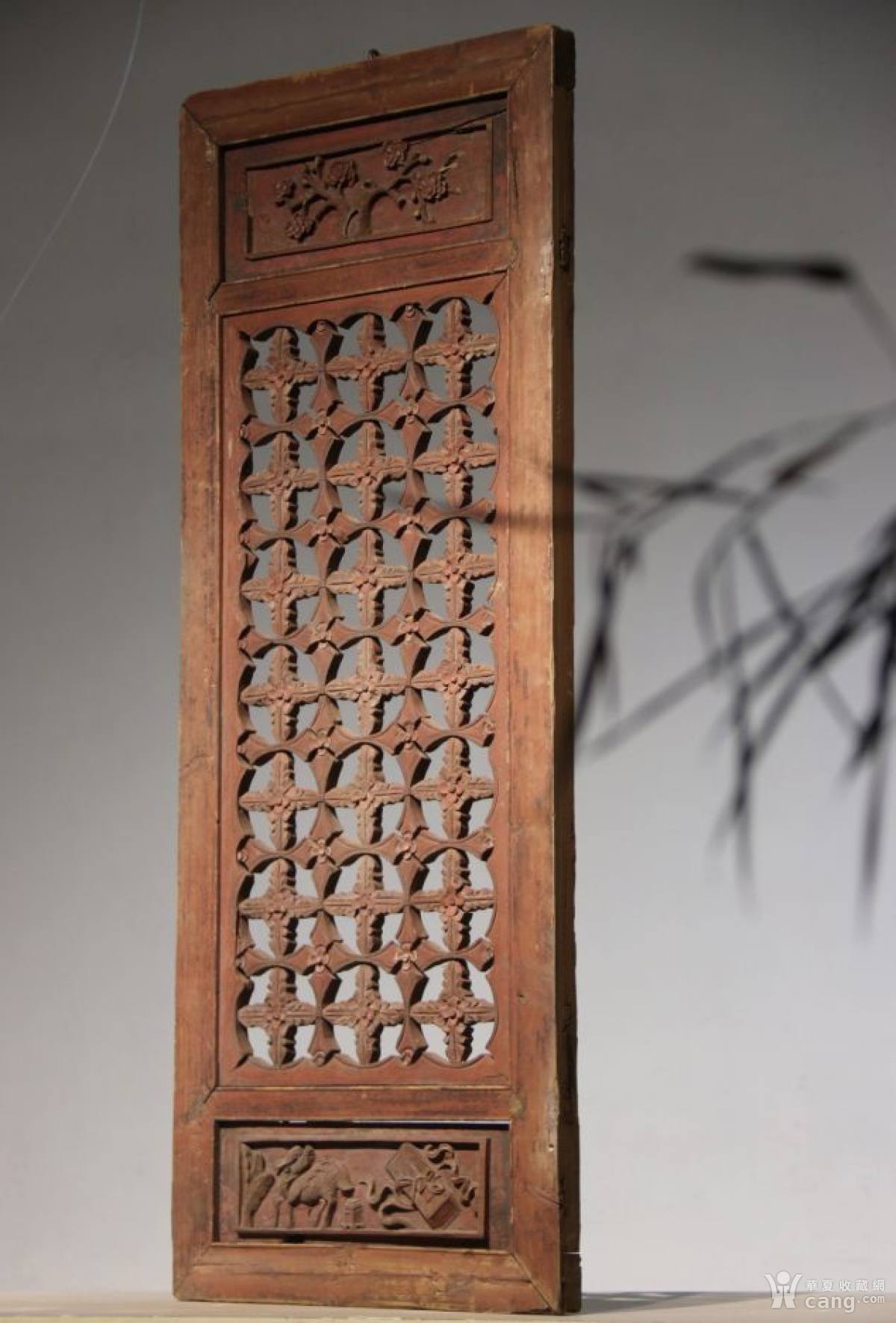 『雅室闲居、自得清欢』古美•朱红漆 挂屏、花窗; 此窗做工精