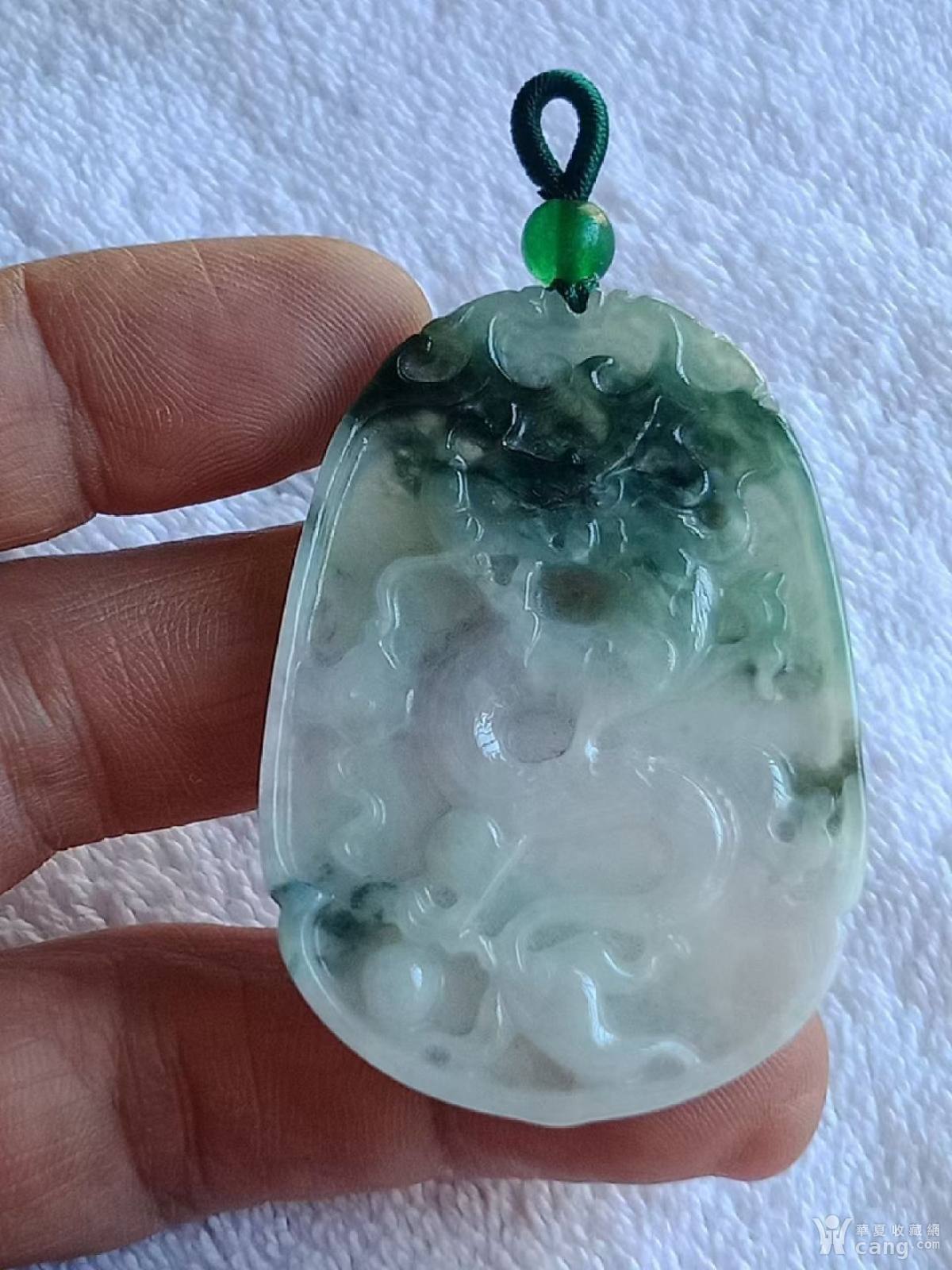 缅甸翡翠3069-A5双彩双面雕龙牌挂件(送证书)