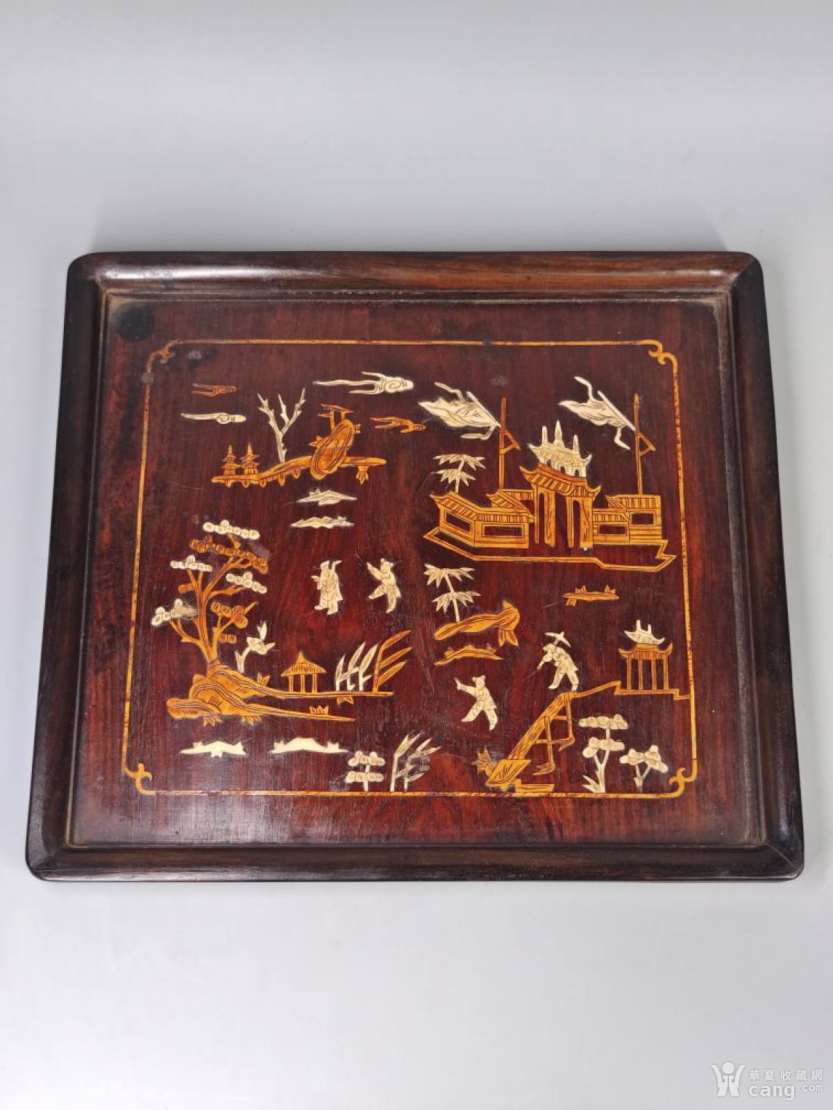 老海南黄花梨文盘镶嵌黄杨木文房雅玩精品收藏