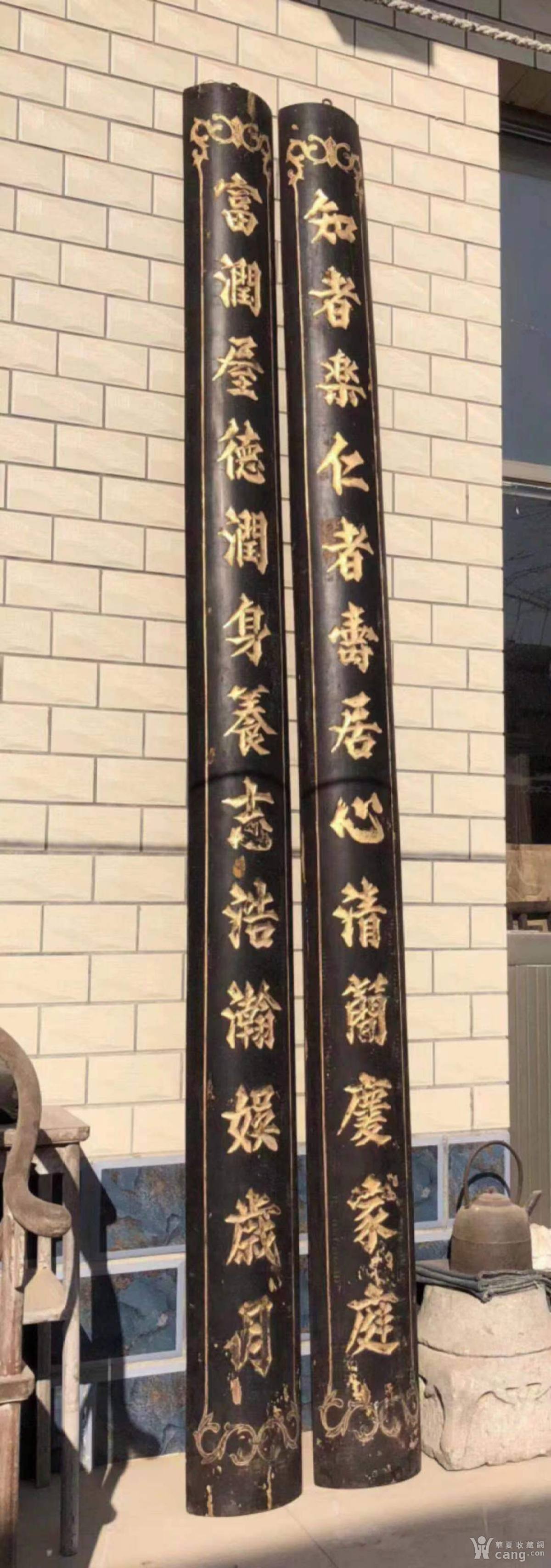 抱柱匾 清代 楠木 黑大漆 描