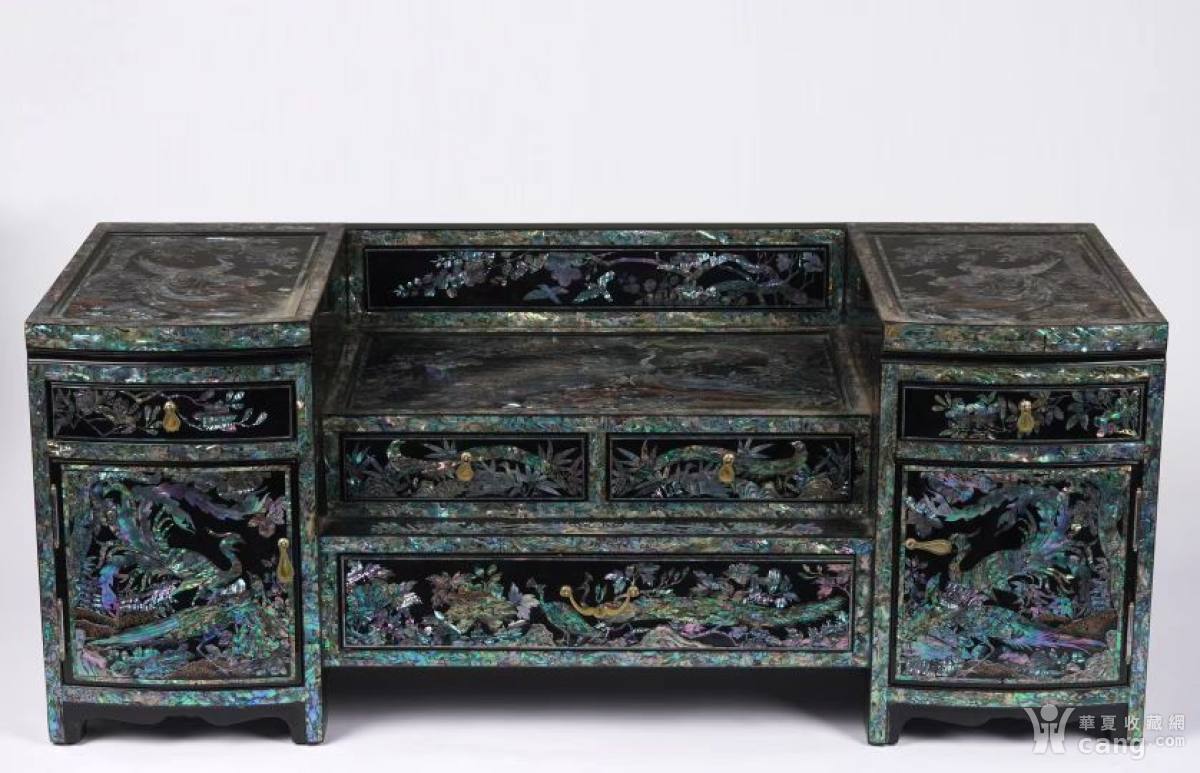 创汇时期木胎大漆嵌彩色螺钿花鸟纹平柜