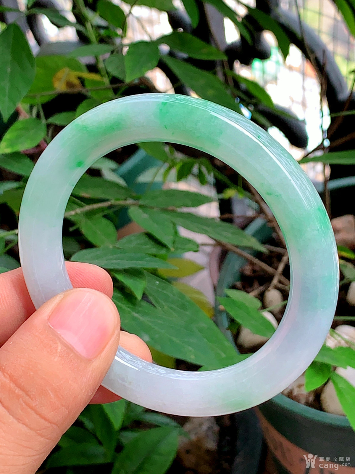 缅甸天然翡翠A货冰透水润春带彩圆条手镯59圈口