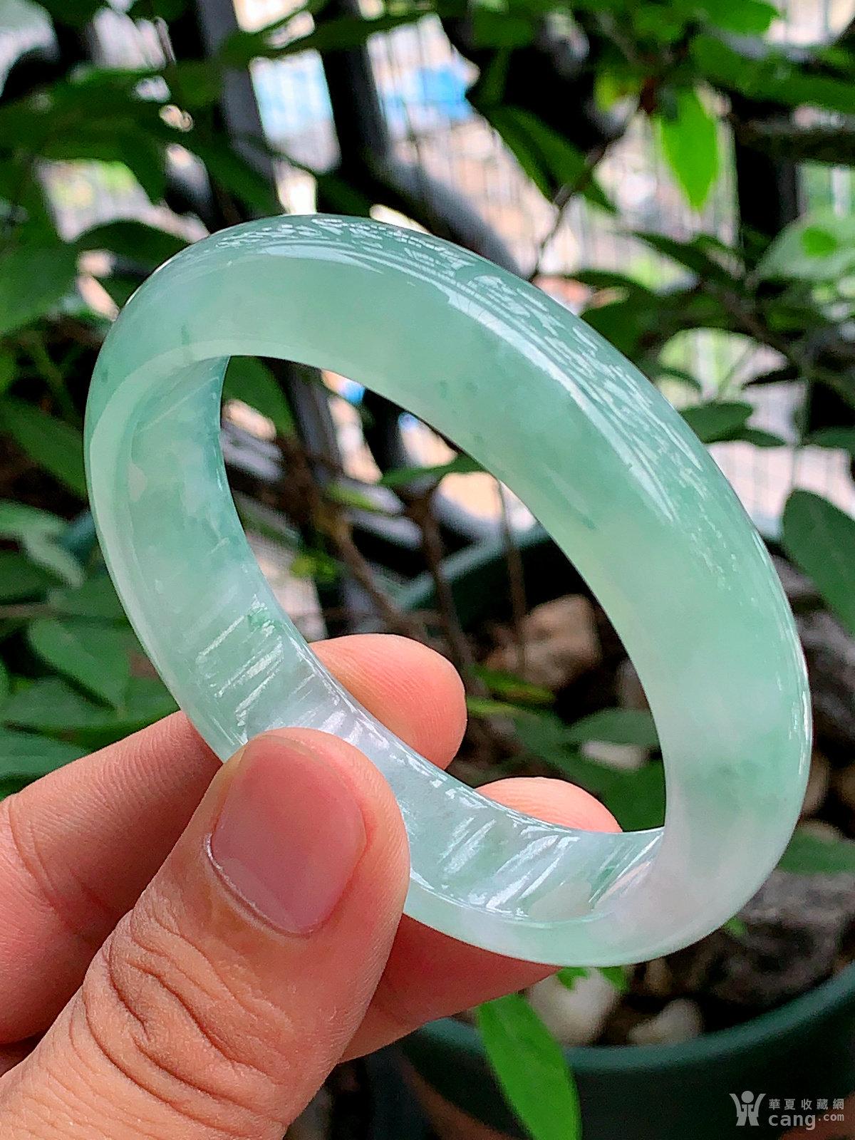缅甸天然翡翠A货冰透水润飘花宽边手镯57圈口