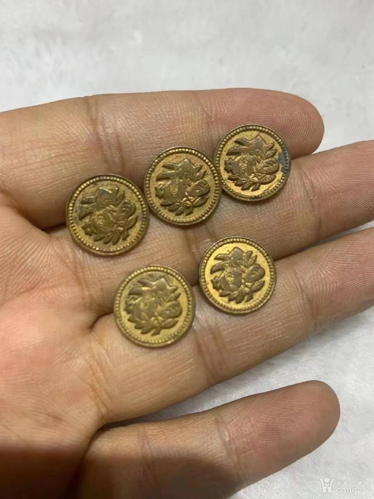 清末福禄寿铜鎏金扣子一套5颗