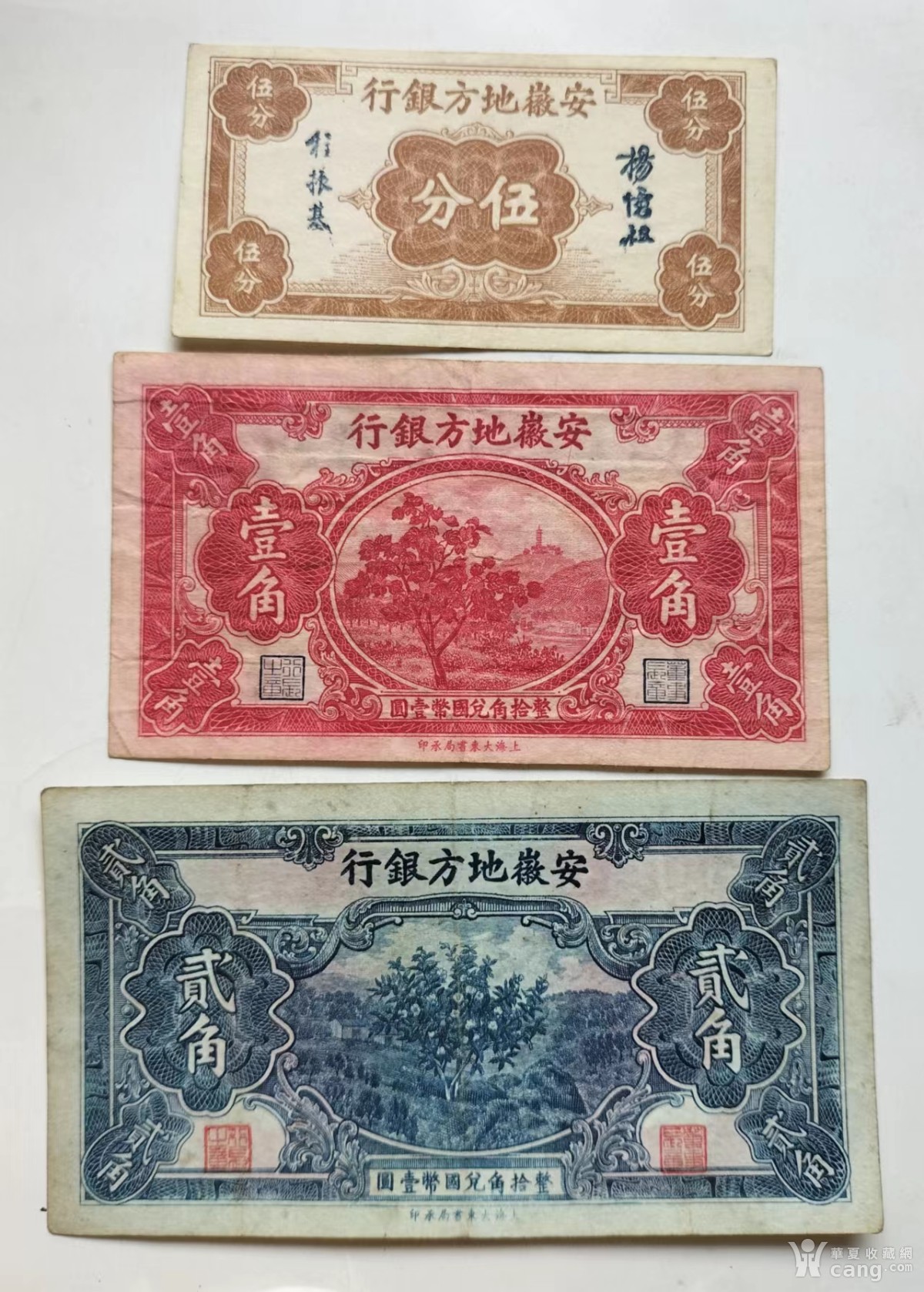 美品【安徽省地方银行“伍分”‘“壹角”’“贰角”}3张原票