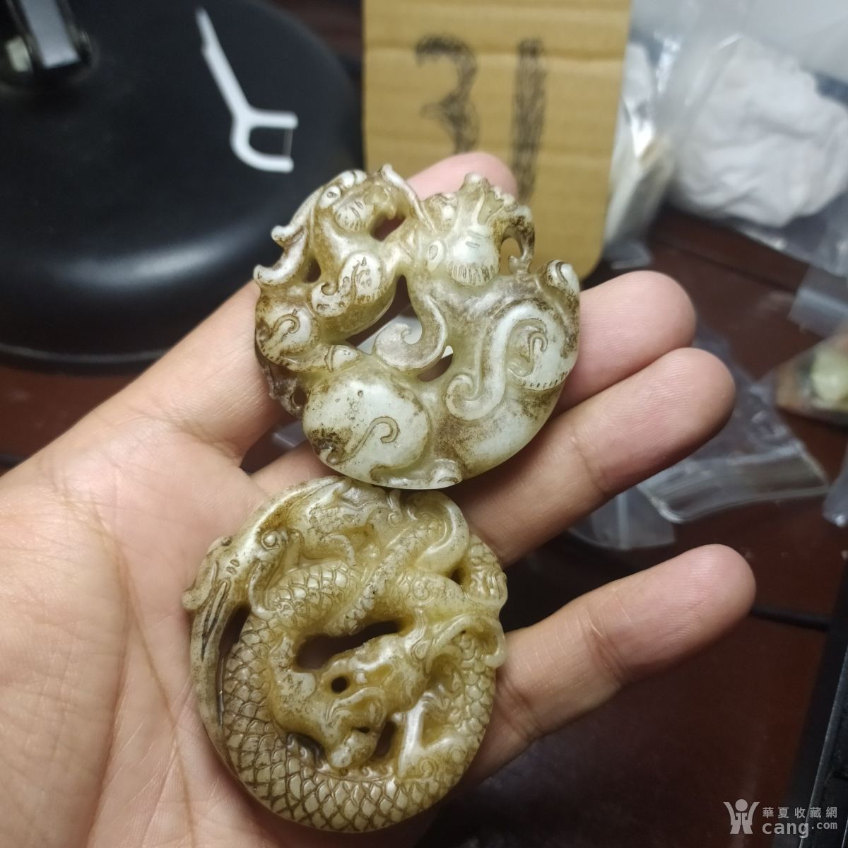 青花瓷器盖子,有小磕,有冲线如图所示