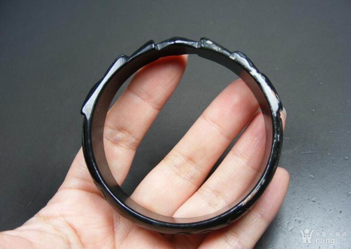 24号 几十年的和田青玉带沁圆雕双龙抢珠宽边厚肉大圆手镯