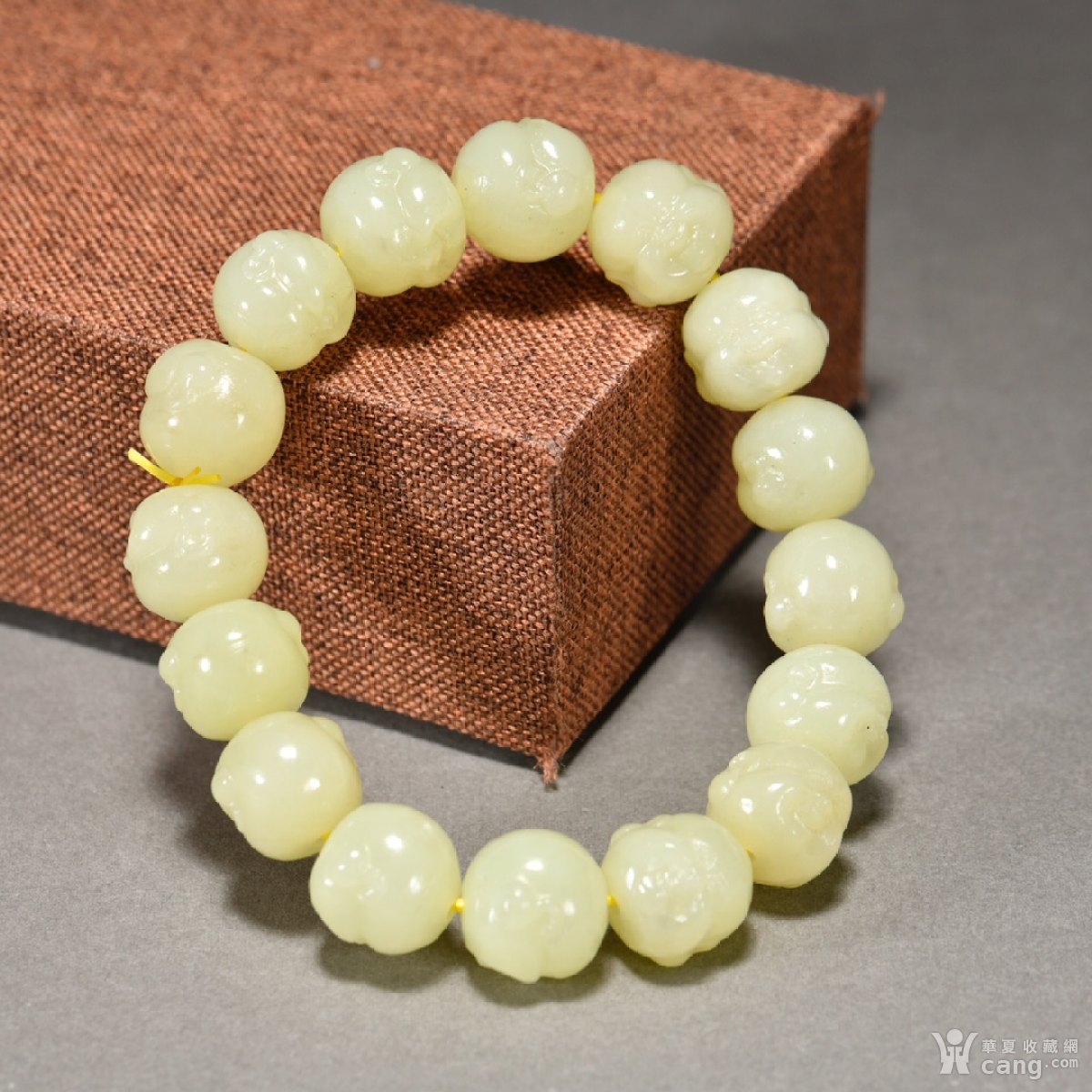 黄玉雕弥勒佛首手串。