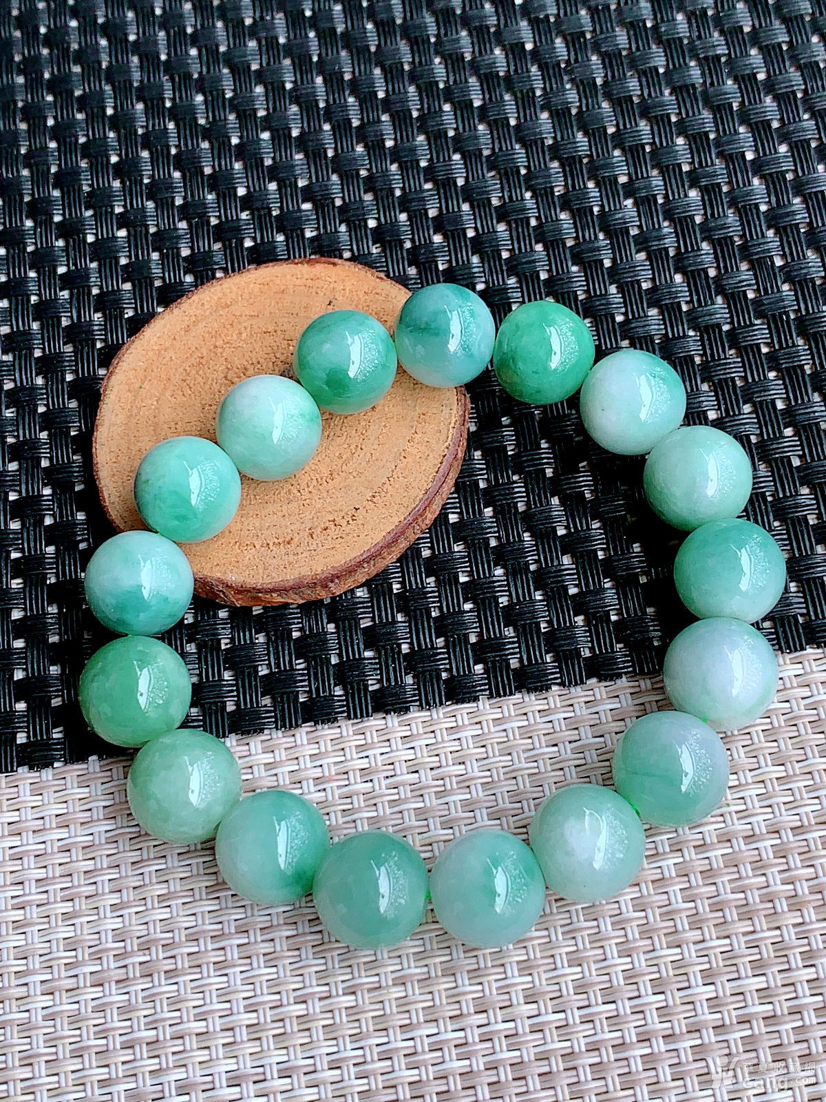 缅甸天然翡翠A货冰润飘花圆珠手串